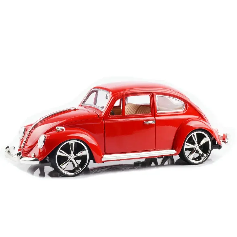 This beautifully crafted 1:18 scale diecast model of the classic Beetle car is a must-have for any automobile enthusiast or collector. With its striking red glossy finish and authentic detailing, the model captures the charm of the original Beetle perfectly. The iconic rounded shape, clear plastic windows showcasing a beige interior, and shiny chrome rims all contribute to its stunning appearance. Ideal for display or as a thoughtful gift, this high-quality Beetle model will transport you back in time, allowing you to cherish classic automotive history from your own collection.