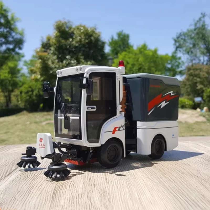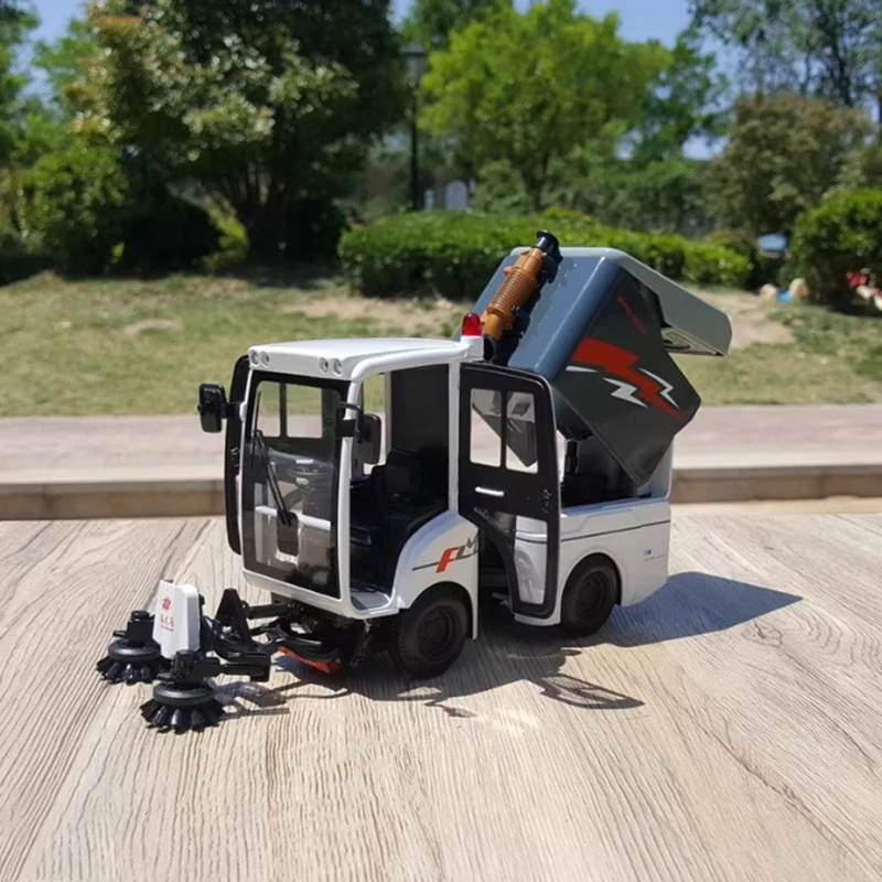 This limited-edition 1:18 scale diecast articulated road sweeper model, crafted from alloy and ABS plastic, offers a sleek, modern design in a clean white finish accented by black, gray, and striking red and gray lightning bolt graphics on the rear storage compartment. The detailed model features carefully molded lines, transparent glass windows, and an articulated joint for a realistic appearance. The accompanying blue, white, yellow, and black cleaning attachment with textured black rollers enhances its industrial aesthetic, making it an excellent collectible for display or decorative use. Suitable for ages 14 and up, this high-quality model perfectly captures the essence of a contemporary sanitation vehicle.