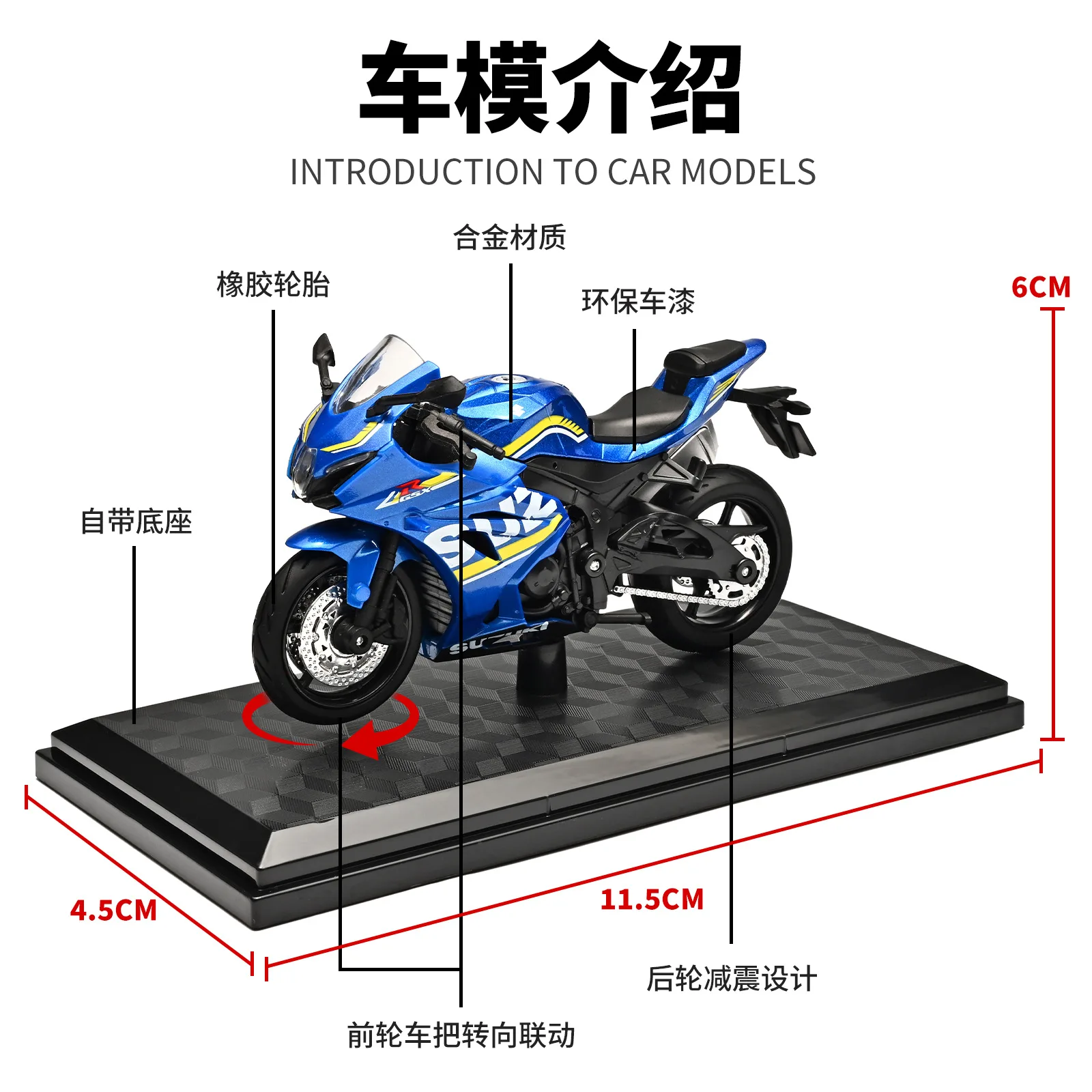 Experience the thrill of high-performance sportbikes with this meticulously crafted 1:18 scale diecast motorcycle model, available in various vibrant colors including red, black, blue, white, and silver. Made entirely of metal for durability and authenticity, this non-electric collectible captures intricate details such as aerodynamic fairings, vents, transparent windshields, sculpted front fenders, detailed suspension, disc brakes, and textured tires. Compatible with models like the CBR1000RR, GSX1000R, R1, and Hayabusa, it features realistic proportions and fine craftsmanship suitable for enthusiasts aged 14 and older. Perfect for display or collection, this miniature puts you right in the rider’s seat.