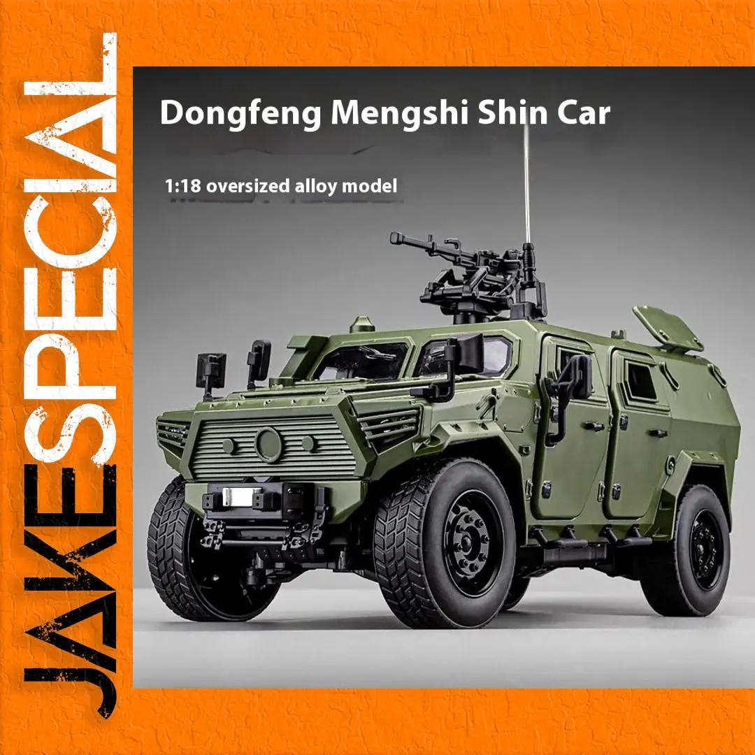 Experience the realism and rugged appeal of this 1:18 scale diecast military model of the DongFeng Warrior vehicle. Crafted from durable metal and finished in matte olive-drab green, it features reinforced armored panels, a detailed turret with mounted machine gun, an extendable antenna, and large off-road tires with deep treads mounted on black wheels with visible lug nuts. Equipped with electronic sound and light functions powered by batteries, it replicates vehicle lighting and engine sounds for an engaging display. Transparent windows reveal interior details, while reinforced surface textures highlight craftsmanship and durability, making it a perfect addition to any military collection or enthusiast display.