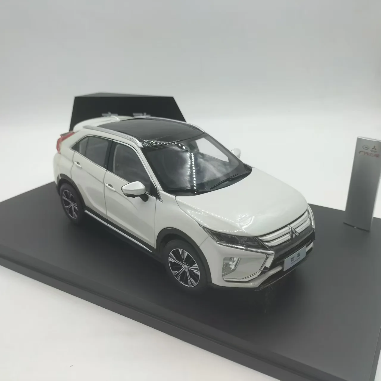 Imagine your collection enhanced with this stunning miniature of the GAC Mitsubishi Eclipse Cross SUV. Crafted with high attention to detail, this 1:18 scale die-cast alloy model captures the modern, sleek aesthetic of the real vehicle. With a striking white main color and contrasting black roof, its aerodynamic silhouette features smooth flowing lines and a dynamic stance. The front grille with horizontal slats and sharp headlamps contribute to its authentic appeal. Functional doors, hood, and trunk open smoothly, revealing intricate interior, engine, and cargo details. The alloy, plastic, and rubber construction ensure durability and realism. Whether displayed as a centerpiece or gifted to a fellow enthusiast, this model offers unmatched realism and craftsmanship.
