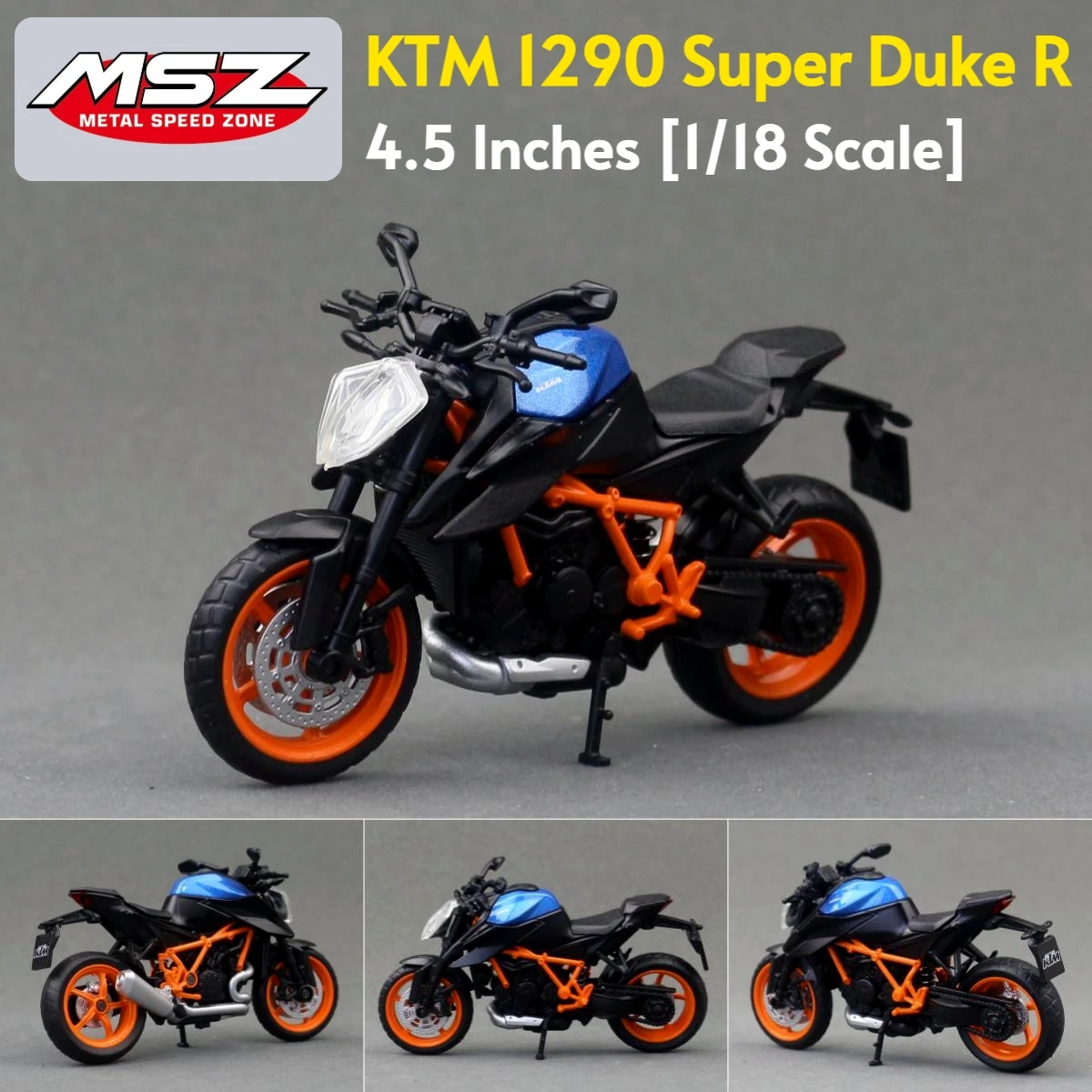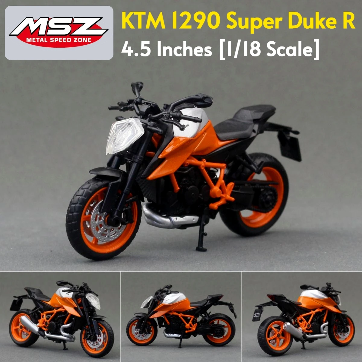 - This 1:18 diecast model features a detailed design with sharp lines and vibrant color accents, closely replicating the iconic KTM 1290 Super Duke R motorcycle for display or collection.