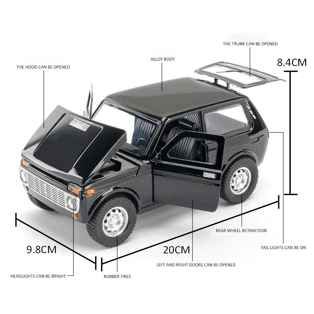 This diecast model is a must-have for any classic car enthusiast or collector, beautifully combining nostalgia and craftsmanship. Its attention to detail makes it a unique centerpiece in any collection. Don’t miss the chance to own this stellar representation of the LADA NIVA!