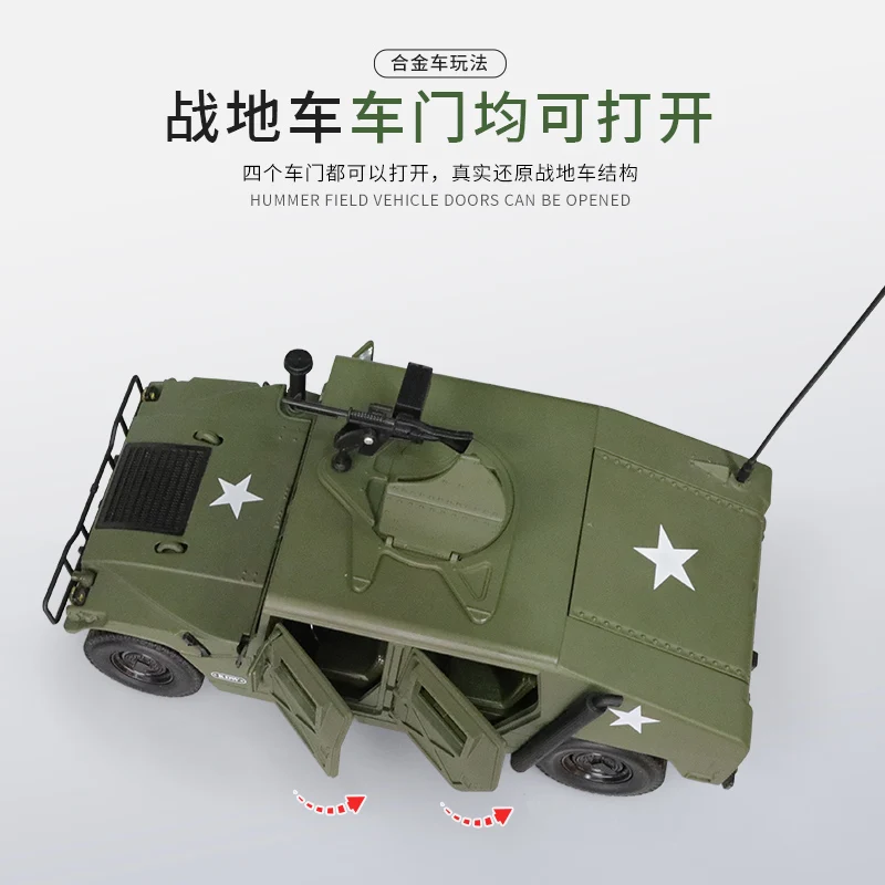 Discover the strength and detail of this realistic Hummer H1 diecast model, a stunning addition to any collection. Its durability and authentic design make it a perfect display piece. Whether creating a military-themed scene or adding a rugged touch to your space, you'll appreciate the meticulous craftsmanship and attention to detail. Own this exceptional model to showcase your passion for military vehicles and enjoy a piece that captures the commanding presence of the original Hummer H1. Don't wait—enhance your collection today with this striking model.