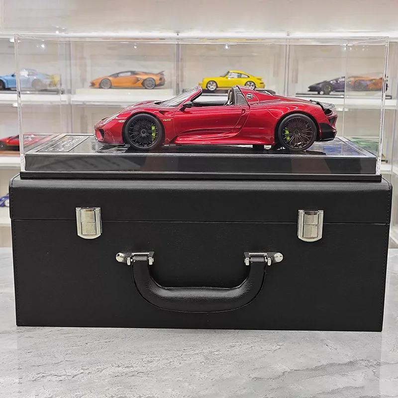 Experience the ultimate display piece with this 1:18 scale resin model of the limited edition Porsche 918 Spyder, measuring approximately 66 cm in length, 25.4 cm in width, and 20.3 cm in height. Crafted from high-quality resin, this detailed replica showcases sleek aerodynamic lines, elongated clear-lensed headlights, large air intake vents, sculpted hood, and realistic black multi-spoke wheels with matching side mirrors. Available in vibrant red, green, and black, it features an intricately detailed interior visible through transparent windows. Perfect for collectors and enthusiasts aged 14 and older, this model elevates any collection with its bold, refined aesthetic and craftsmanship.