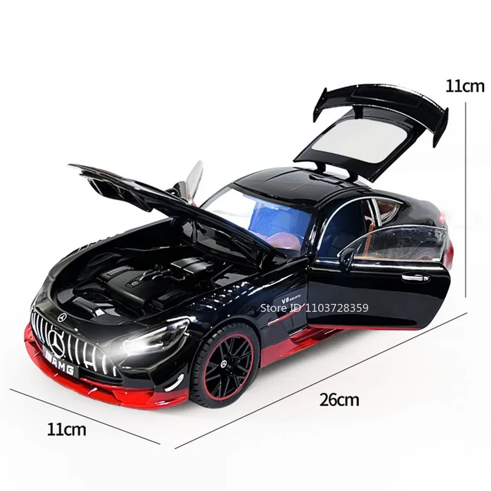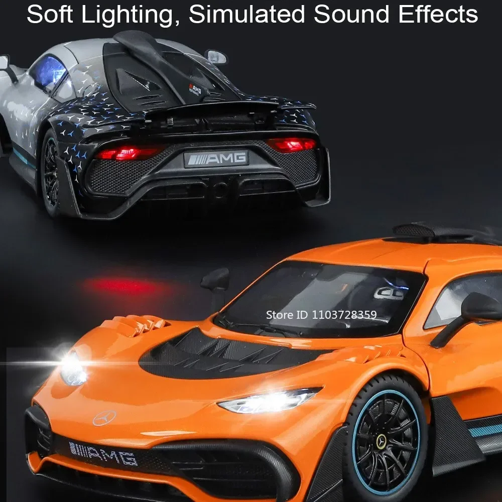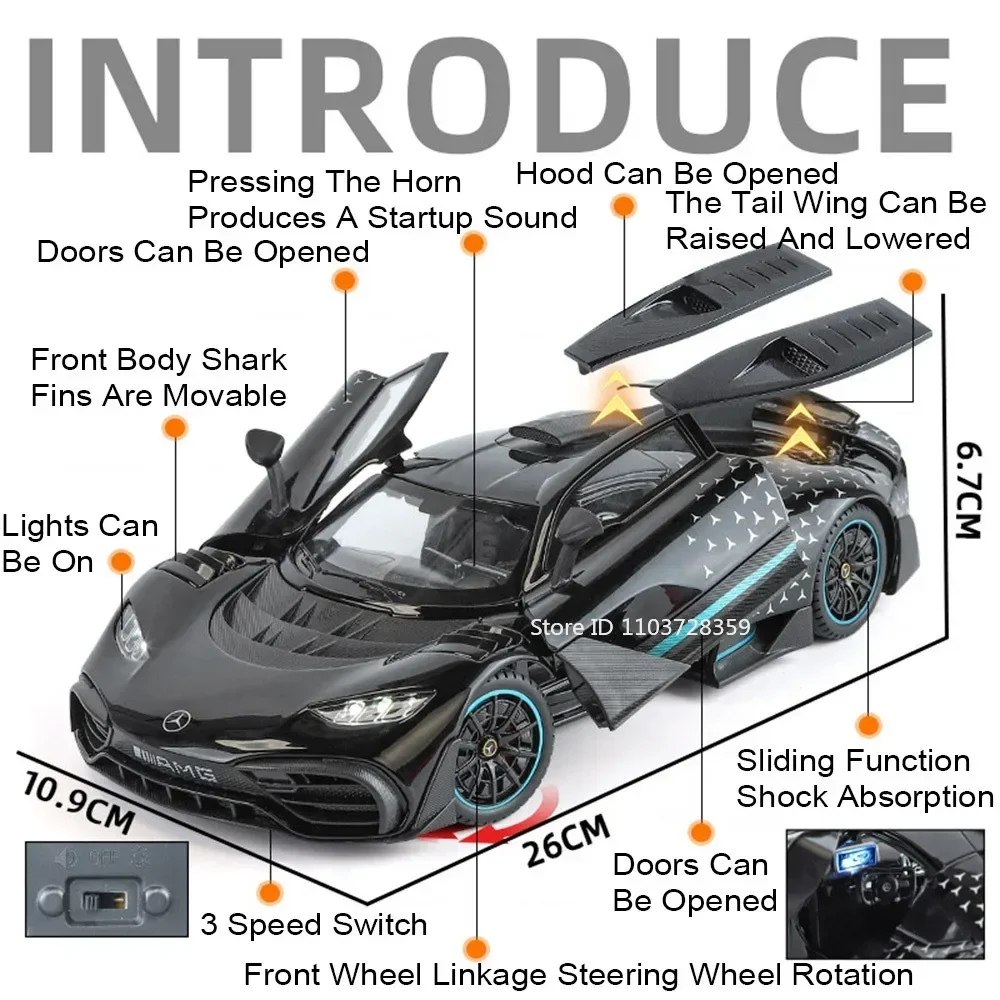 Experience the thrill of owning a detailed replica of a modern supercar with this highly realistic 1:18 scale miniature sports car. Crafted from a durable metal alloy body, complemented by a plastic chassis and rubber tires, this model showcases sharp aerodynamic lines and a glossy metallic finish that mimics real supercars. Its aggressive yet sleek design features narrow headlights, a black grille, and a tapered roofline leading to a prominent rear spoiler. The model’s operable doors, engine hood, and trunk add a layer of interactivity, perfect for detailed appreciation. Activated by pressing the body or front wheels, it reproduces authentic engine sounds and horn effects. The shock-absorbing wheels provide stability across various surfaces, making it a visually stunning and durable piece for collectors and enthusiasts alike.