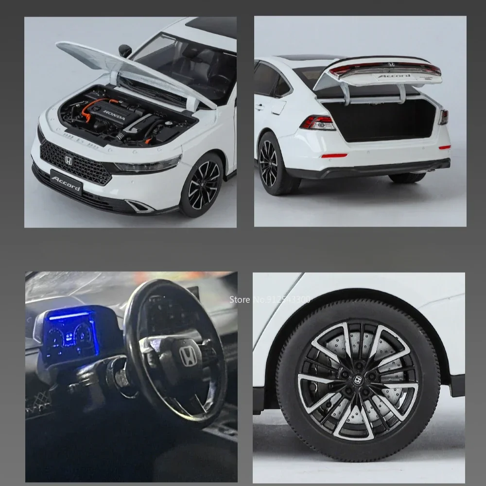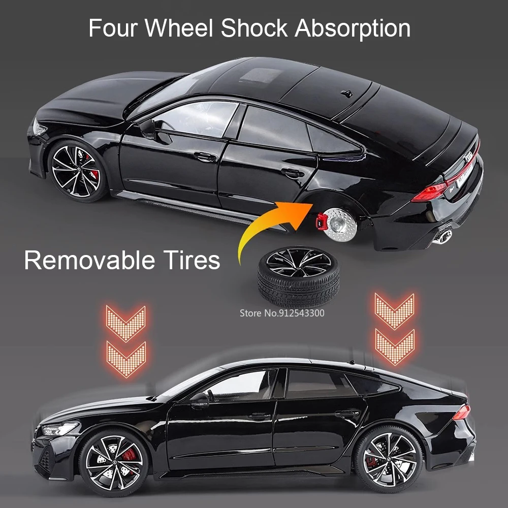 This highly detailed 1:18 scale model features a sleek metal body with a plastic chassis and rubber tires, measuring approximately 27 x 11.7 x 7.5 cm for the RS7 version and 27 x 12 x 8 cm for the Honda Accord. It boasts advanced functions including sound and light effects, linkage steering, operable doors, and shock absorption, delivering a realistic driving experience. Available in black, white, and gray, this premium collectible is perfect as a hobby ornament or gift, providing an authentic visual impression with precise craftsmanship and high simulation accuracy. It operates with a lithium battery and is suitable for enthusiasts aged 14 and above.