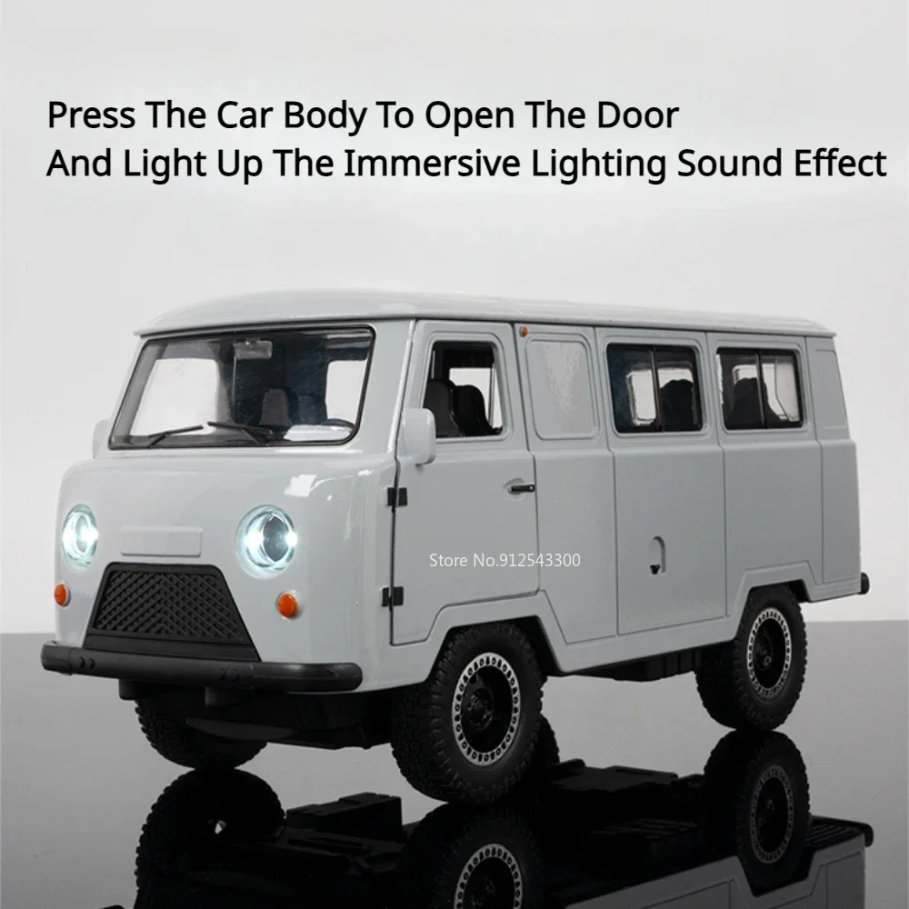 Bring home this meticulously crafted 1:18 scale Russian UAZ Traveler diecast model and elevate your collection. Its detailed construction and interactive features make it perfect for passionate collectors or as a striking display piece. Imagine showcasing this authentic replica in your space, capturing its vintage military vibe while enjoying the small but realistic functions. Whether you’re an avid enthusiast or discovering your love for diecast models, this vehicle offers a perfect blend of craftsmanship and visual appeal. Don't miss the opportunity to own such a detailed and authentic piece—add it to your collection now!