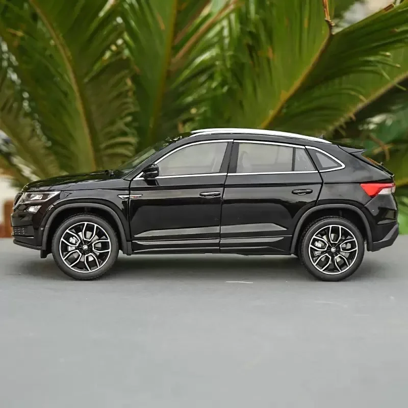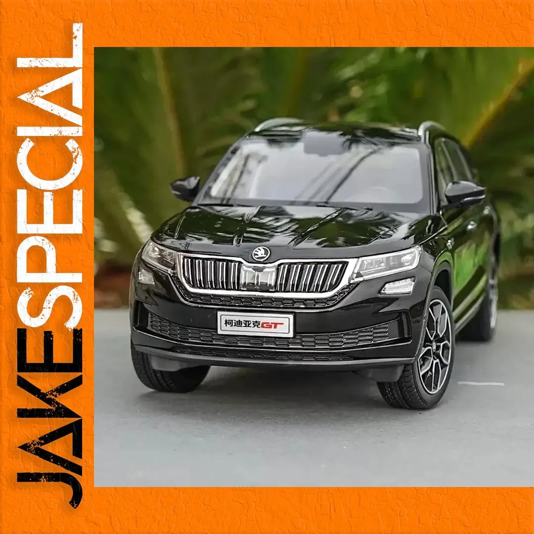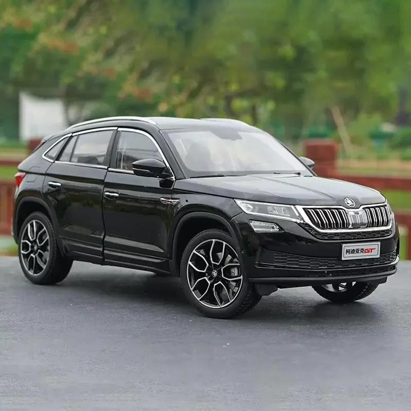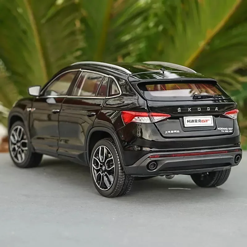 This exquisite 1:18 scale diecast model of the SKODA KODIAQ GT embodies a stunning glossy black finish that captures attention in every detail. Measuring approximately 26 cm in length, 10 cm in width, and 9 cm in height, it features intricate craftsmanship including a chrome grille showcasing the SKODA logo, sleek angular headlights, and a textured front bumper. The model is constructed from high-quality zinc alloy, with plastic and rubber elements ensuring durability and realism. The openable doors reveal a meticulously designed interior, while the rubber tires and detailed alloy-style rims add an authentic touch. This model is perfect for display and is an impressive addition to any car enthusiast's collection.