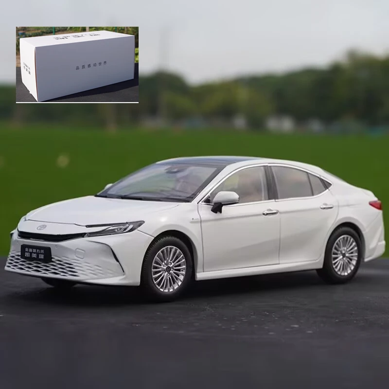 Experience the elegance of this 1:18 scale diecast alloy model of the Toyota Camry, crafted for collectors and enthusiasts alike. Its sleek, modern design captures the essence of the real vehicle, with smooth aerodynamic lines and a pristine white finish. The contrasting black roof adds a sophisticated touch, reminiscent of a panoramic sunroof. Realistic details like slim elongated headlights, transparent windows revealing interior elements, and finely crafted side mirrors and door handles bring this model to life. Silver multi-spoke alloy wheels enhance its refined appearance. Perfect for display or as a meaningful gift, this miniature combines high craftsmanship and intricate detailing to evoke the beauty of the full-sized Toyota Camry, ensuring you can enjoy a premium look at any angle.
