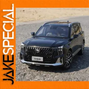 Imagine owning a highly detailed replica of the modern GAC Trumpchi GS8 2022 SUV, beautifully finished in glossy black. This premium diecast model captures every contour, from its bold squared-off body to sleek aerodynamic lines that embody contemporary SUV style. The imposing front grille with chrome accents, narrow angular headlights, and intricately detailed LED-like internal structures make this model stand out. Multi-spoke alloy wheels with textured rubber tires lend authenticity, while black side mirrors and tinted windows complete its sophisticated look. Perfect for display, this collectible model embodies the strength and elegance of the original vehicle in a compact 1:18 scale, ready to elevate your collection with precise craftsmanship and realistic aesthetics.