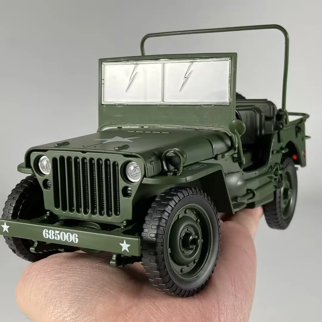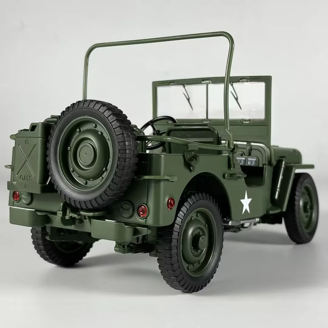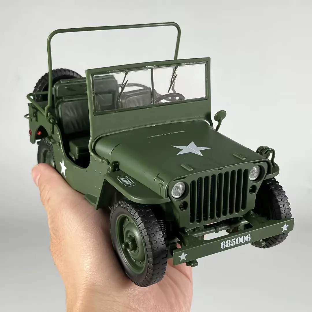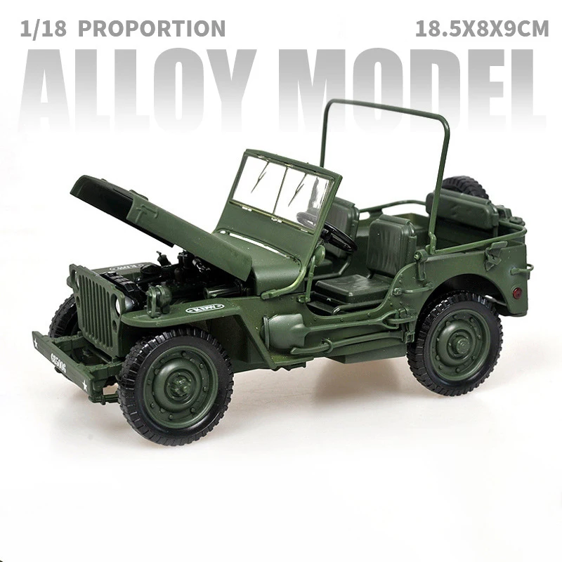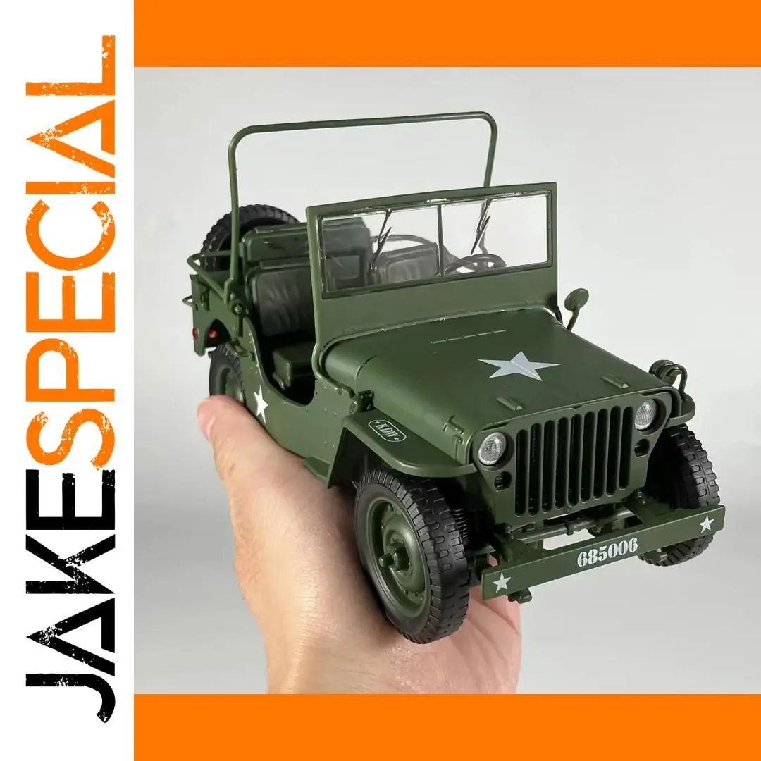 - Designed to a 1:18 scale with authentic vintage military styling, including iconic front grille, round headlights, and military decals for added realism.