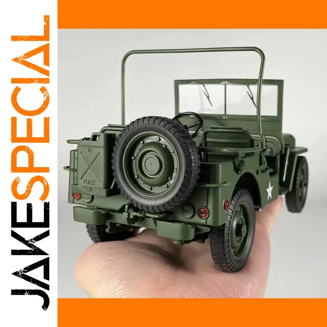- Technical specifics: Alloy metal construction, non-electric, free from hazardous chemicals, 1:18 scale, modeled after vintage Willys Jeep with high detail craftsmanship.