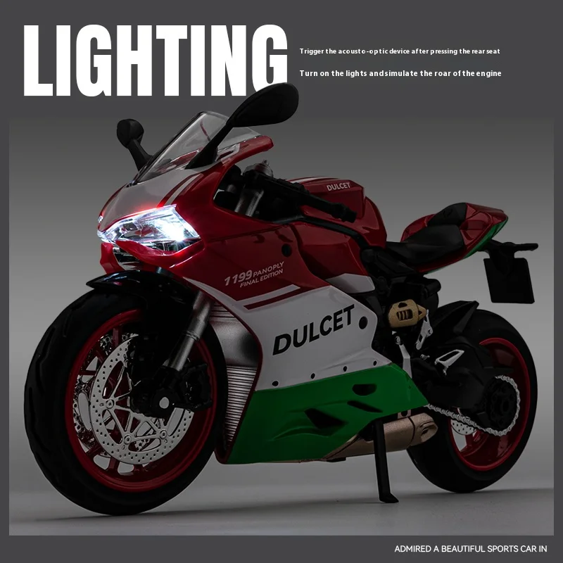 Imagine this captivating motorcycle model gracing your center console or adorning your desk, creating an atmosphere of style and sophistication. The “1199 DULCEY” is not just a model; it’s a statement piece that reflects your taste and passion for fine collectibles. Don’t miss the chance to own this exquisite representation of racing excellence. Add it to your collection today and let it inspire admiration from every glance!