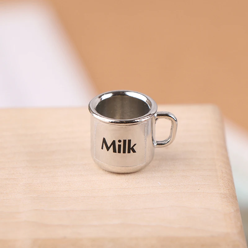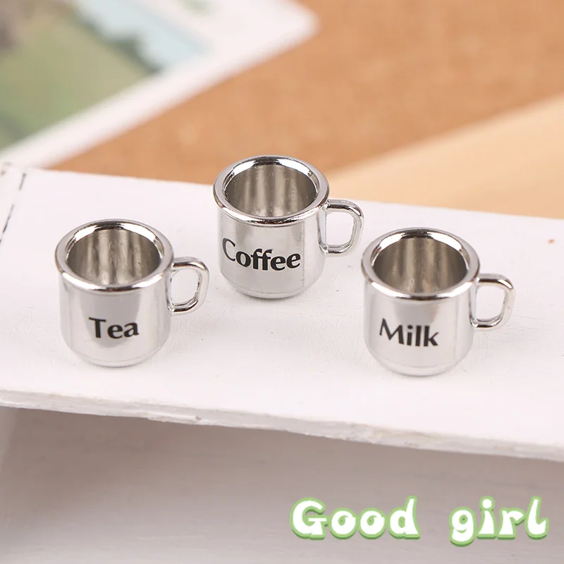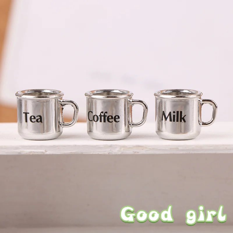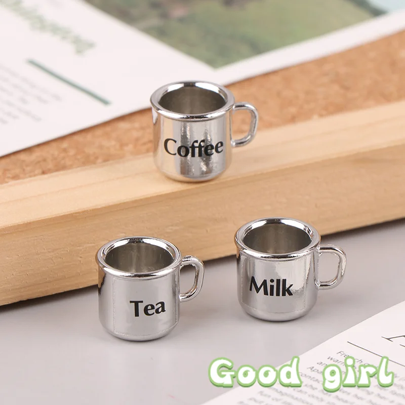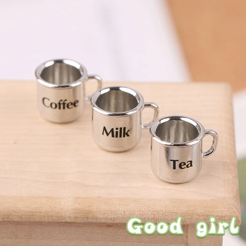 Experience the charm of miniature realism with this meticulously crafted 1/12 scale metal coffee and tea cup. Measuring approximately 1.8 cm in height and 1.3 cm in width, these tiny cups feature a sleek, shiny silver metallic finish that catches the light beautifully. Each cup is designed with a cylindrical shape tapering slightly towards the base, complemented by a delicate, curved handle that adds to their authentic appearance. Perfect for dollhouse lovers or miniature landscape enthusiasts, they bring a touch of sophistication and realistic detail to your miniature scenes. The minimalist black labels reading “Milk,” “Tea,” and “Coffee” enhance the visual appeal, offering a charming and functional aesthetic for any miniature setup or collectible display setting.