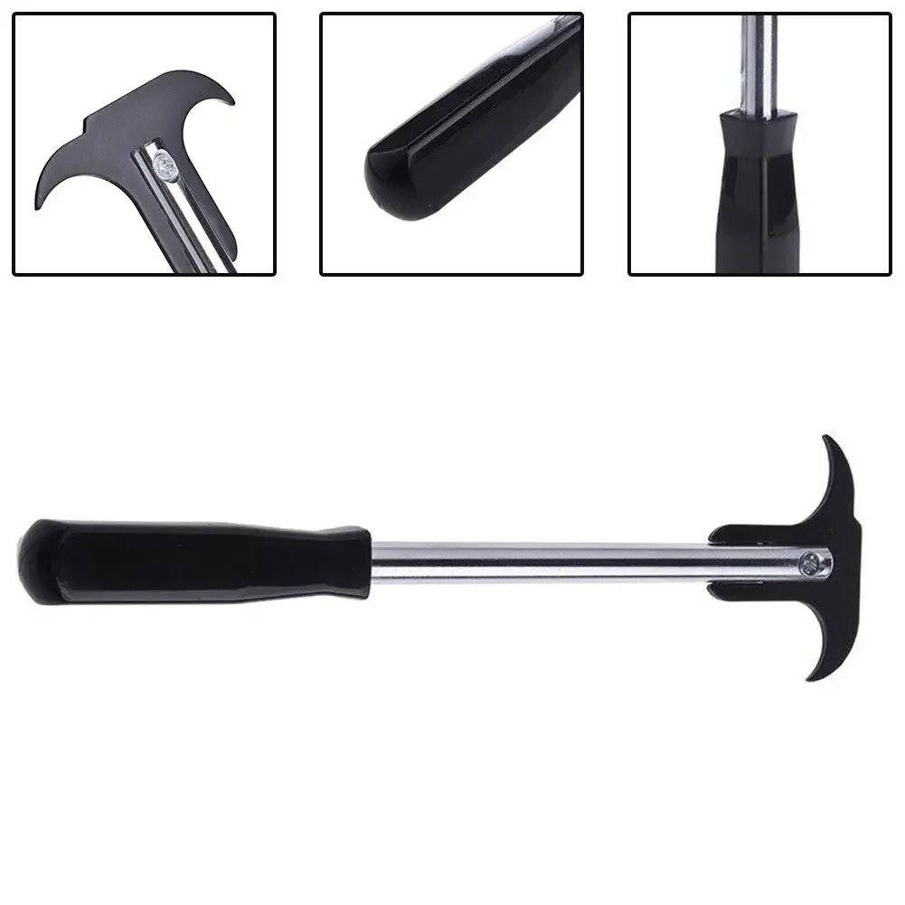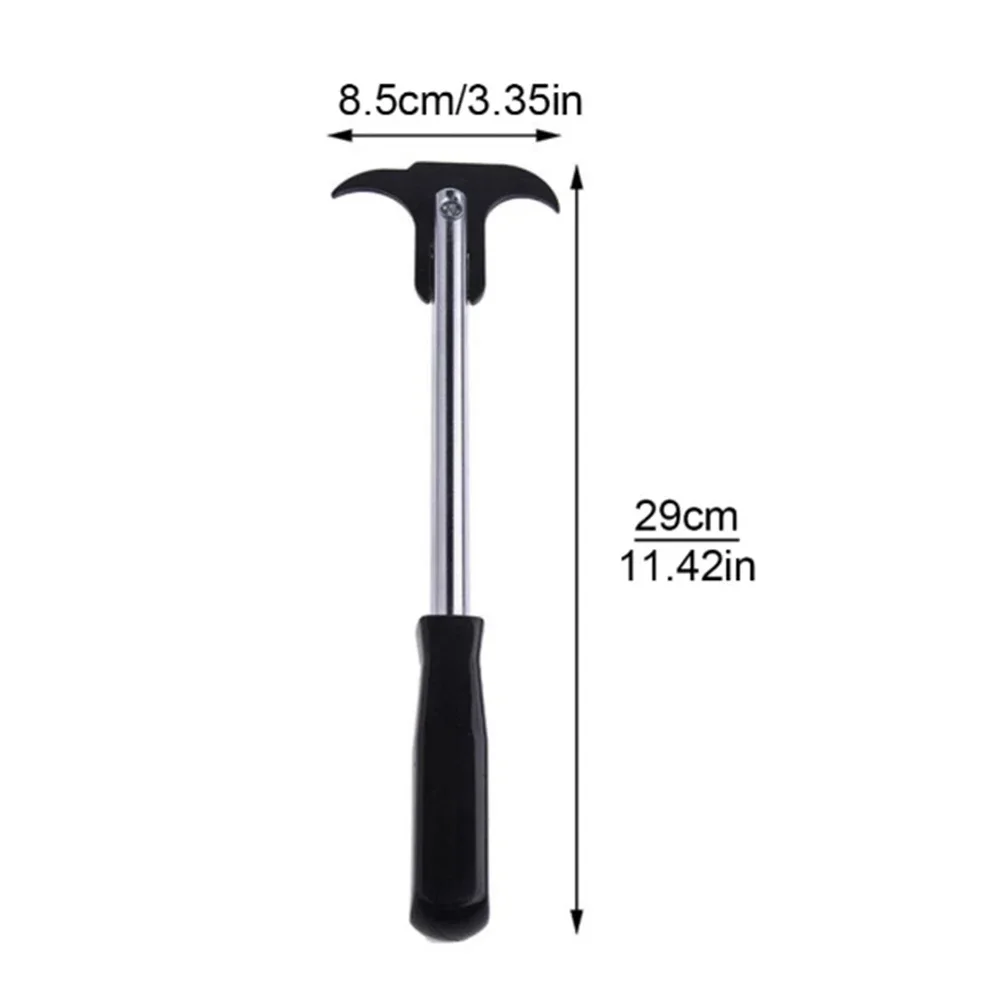 The 12-inch Car Oil Seal Puller is expertly designed for efficient removal of grease and oil seals, measuring 290mm in length and 85mm in width. Constructed from durable plastic and metal, it features a striking silver metallic shaft complemented by a robust black double hook head, designed for effective gripping. The ergonomic handle ensures comfort during use, making it suitable for various sealing sizes. Additionally, the anti-rust treatment enhances durability, making this tool ideal for both professional mechanics and DIY enthusiasts tackling automotive tasks with confidence.