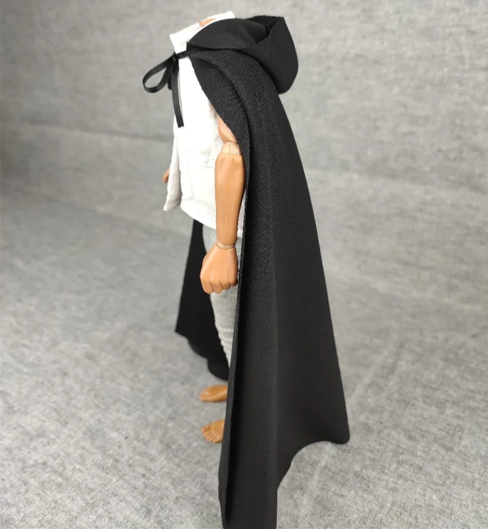 Envelop your 1:6 scale action figure in timeless style with this handmade black hooded cloak. Crafted from soft, textured flannel, it delivers a cozy yet dramatic look, perfect for customization or display. Its oversized hood and flowing silhouette add a mysterious charm, making your figure stand out with an effortlessly authentic, handmade appeal. The neutral black color ensures versatility, matching various outfits and scenarios. Designed as a finished accessory, this cape offers a perfect fit for 12-inch figures, allowing you to create compelling displays and scenes. Whether for creative projects, display collections, or cosplay, this cloak promises quality craftsmanship and a compelling visual impact, bringing your figure to life in a simple yet striking way.