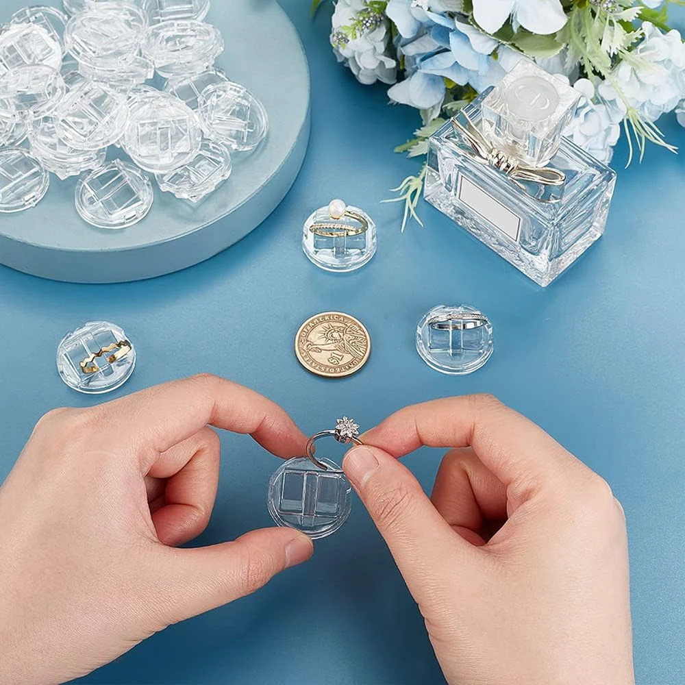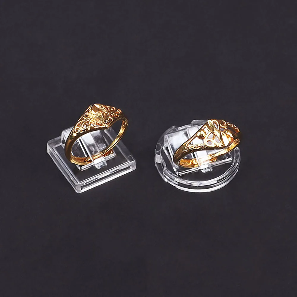 Enhance your jewelry presentation with this set of 12 clear acrylic ring display holders, crafted from non-toxic PVC plastic. Designed in square shape with dimensions that may vary by 0-2cm due to hand measurement, these sleek and modern stands are ideal for showcasing rings at sales, boutiques, or personal collections. The transparent acrylic provides a glossy, unobtrusive backdrop that highlights the intricate details of various ring styles, including floral clusters, pearls, and embedded stone bands. Available in both square and round shapes, their minimalist design seamlessly complements any display setting, making every ring stand out with elegance and clarity.