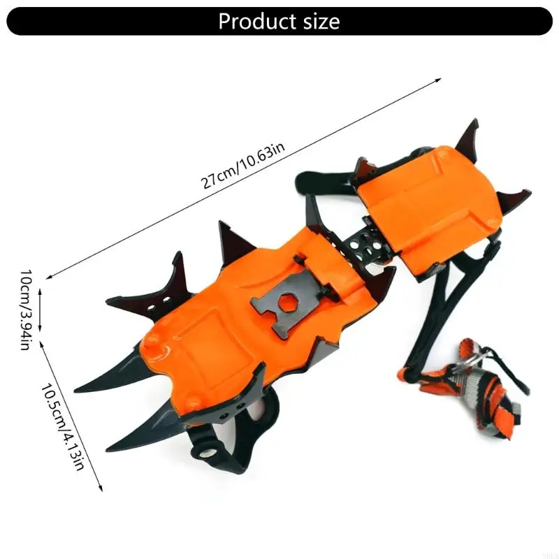 Experience secure traction with these durable 12-tooth ice cleats, crafted from high-strength steel and rubber for rust resistance and longevity. Measuring approximately 27x10x10.5 cm (10.63×3.93×4.13″) and weighing around 1200 grams, these cleats provide reliable grip on ice and snow. Designed with adjustable features to fit various shoe sizes, they incorporate perforations for enhanced stability and comfort. Perfect for outdoor winter activities such as hiking, skiing, or working in icy environments, these cleats ensure safety and confidence with every step in challenging conditions. Their rugged, industrial aesthetic emphasizes both functionality and durability.