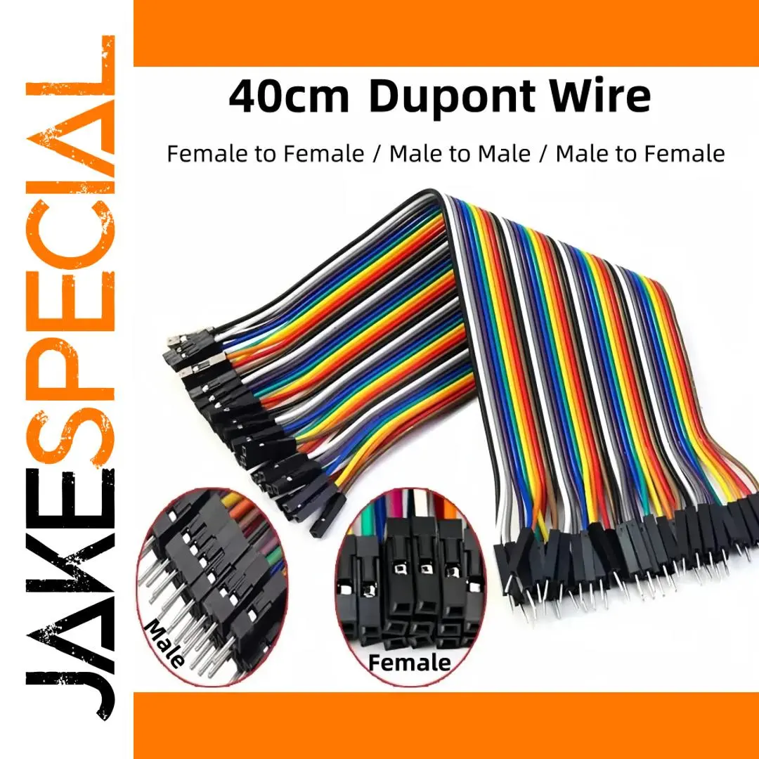 - 120 total wires available in three configurations: female-to-female, male-to-male, and male-to-female, all in a 40cm length for versatile electronic project connections.