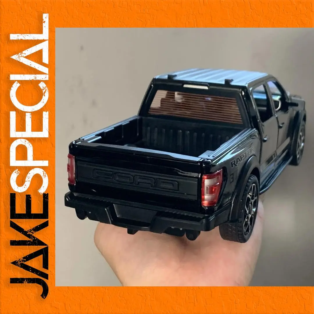 Don't miss the opportunity to add this stunning Ford Raptor F150 pickup truck model to your collection. With its attention to detail and robust construction, it serves as a fantastic ornamental piece for any enthusiast. Elevate your décor with this remarkable portrayal of a legendary vehicle!