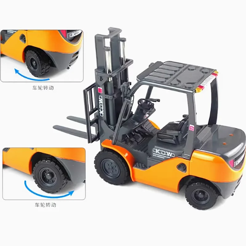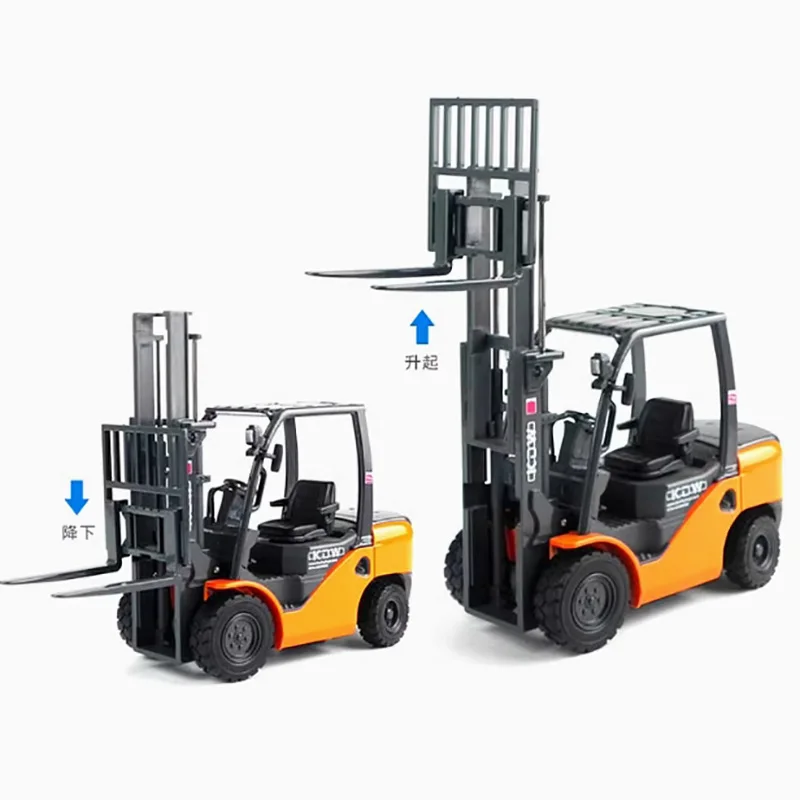 - Designed at a 1:20 ratio, accurately scaled for display, with detailed print logos and structural features that mimic real forklift machinery.