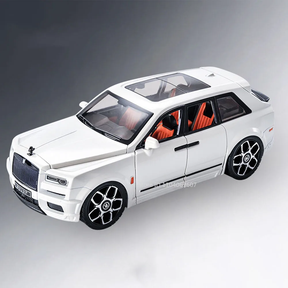Experience the elegance and sophistication of this meticulously crafted 1:20 scale model of the Rolls-Royce Cullinan Phantom. Featuring a sleek, metallic alloy body, it embodies luxury and high-end craftsmanship. The model boasts detailed interior features, including functioning doors, engine hood, and trunk that can be opened to reveal intricate mechanical and cabin details. Its rubber tires with textured treads and real alloy wheels enhance authenticity. The pull-back mechanism provides dynamic movement with just a simple pull, adding to the interactive experience. Pressing the front of the model activates realistic sound and light effects, emulating the luxury vehicle’s features. This is more than a toy—it’s a collector’s masterpiece that brings the grandeur of a Rolls-Royce to your hands or display collection.