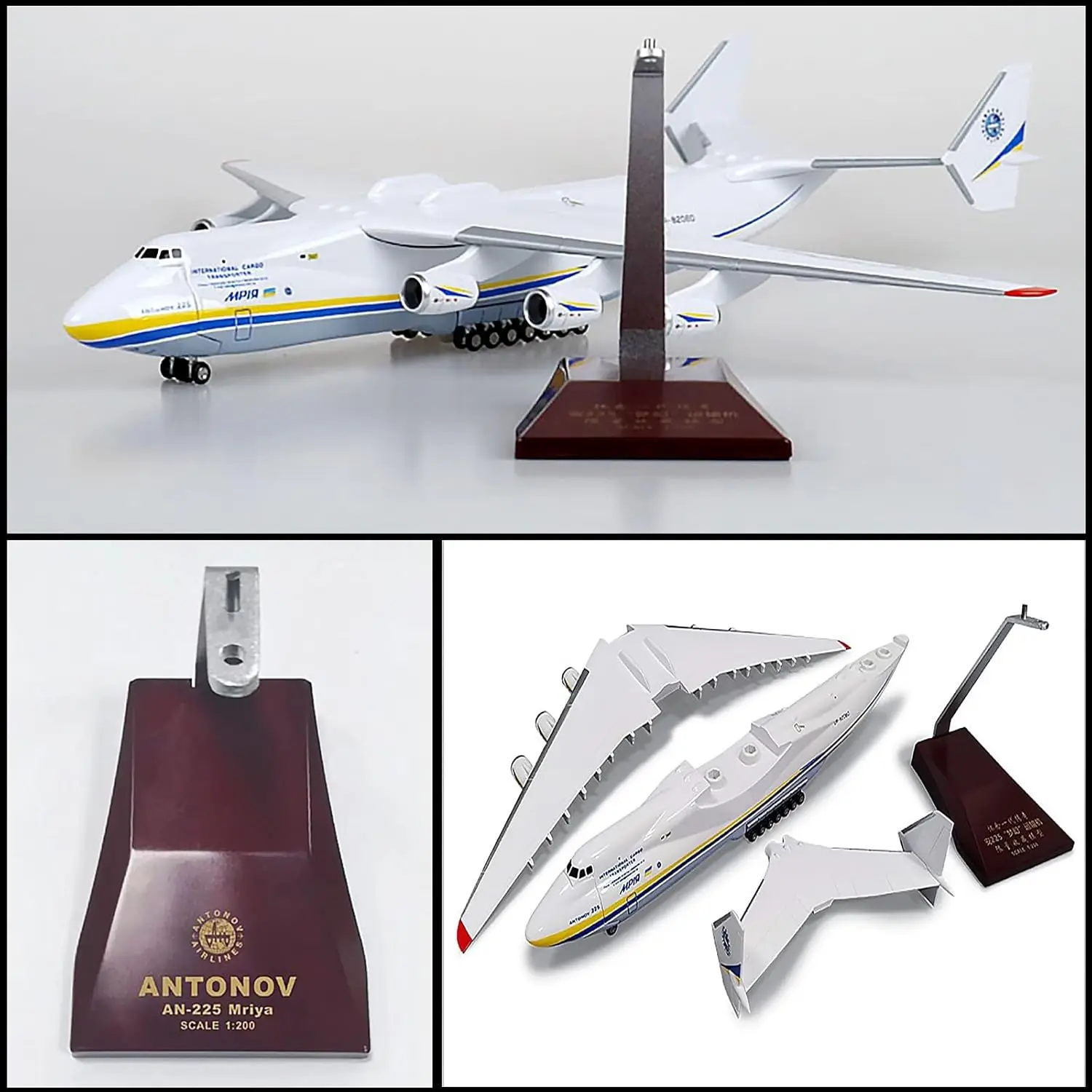 Experience the impressive 1:200 Scale AN225 Model Airplane, measuring 16.5″ in length, 17.3″ in wingspan, and 8.3″ in height, weighing 2.2 pounds. Constructed from high-quality resin, this diecast model features an openable cabin with a “kneeling” nose that elevates and a lowerable main deck for interactive display. The model showcases intricate detailing with clear markings, all finished in baked paint that resists fading and cracking. It includes a stylish display stand, ensuring your model takes center stage in any collection. Perfect for aviation enthusiasts and collectors alike, elevate your space with this stunning centerpiece.