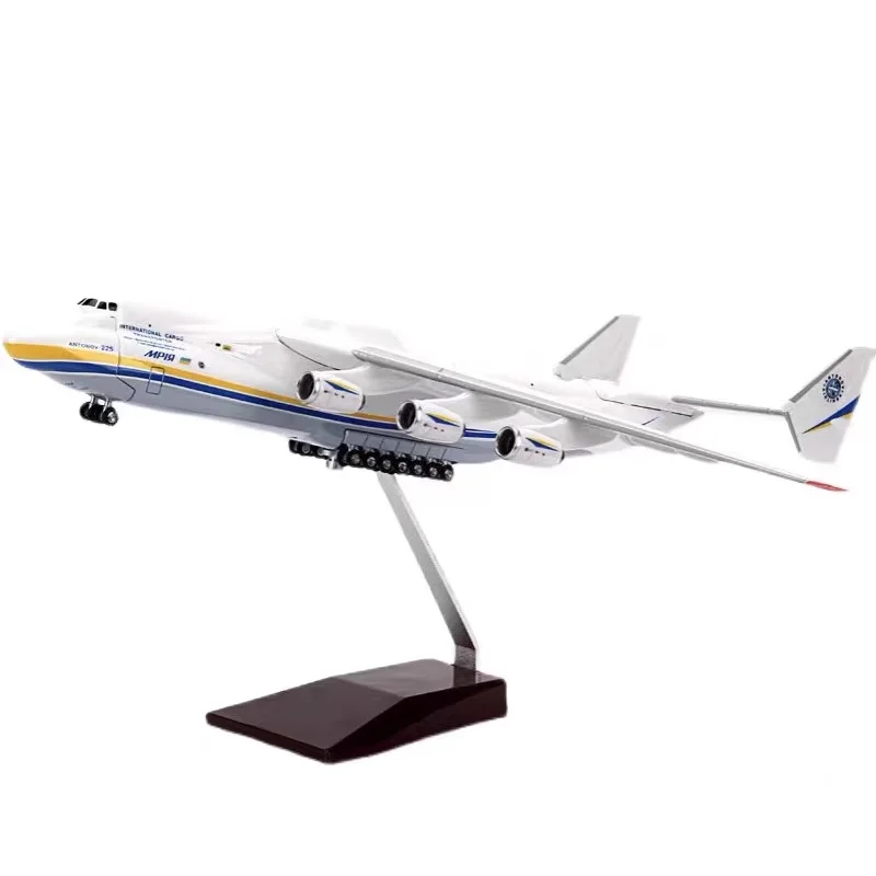 Experience the awe of aviation with the stunning 1:200 Scale Souvenir An-225 Transport Aircraft model. This meticulously crafted model, made from durable alloys and plastics, brings the majesty of the world’s largest cargo plane to your collection. Featuring a classic white paint scheme adorned with blue and yellow accents that reflect its Ukrainian heritage, this model captures the iconic silhouette of the actual aircraft. With its pronounced nose, detailed wings, and six powerful engines, each component is designed with precision, making this model a standout piece for any aviation enthusiast.