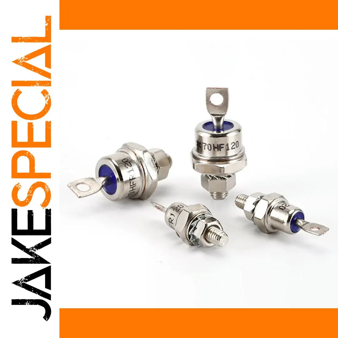 Experience reliable power conversion with this professional-grade rectifier set, designed for high-current industrial applications. Featuring a sleek, metallic finish, these cylindrical components exude durability and top-tier craftsmanship. The shiny silver surface reflects a polished aesthetic, with each diode securely mounted via a hexagonal nut and threaded stud for effortless installation. The blue insulating ring around the connection base adds a pop of color while ensuring electrical insulation. Markings engraved on the body clearly display model numbers and specifications, confirming their high-quality manufacturing standards. Whether used in battery charging systems, power supplies, or welding machines, these rectifiers guarantee efficient, stable performance with their robust construction and precise engineering. Your investment in these components ensures long-lasting reliability and optimal functionality.