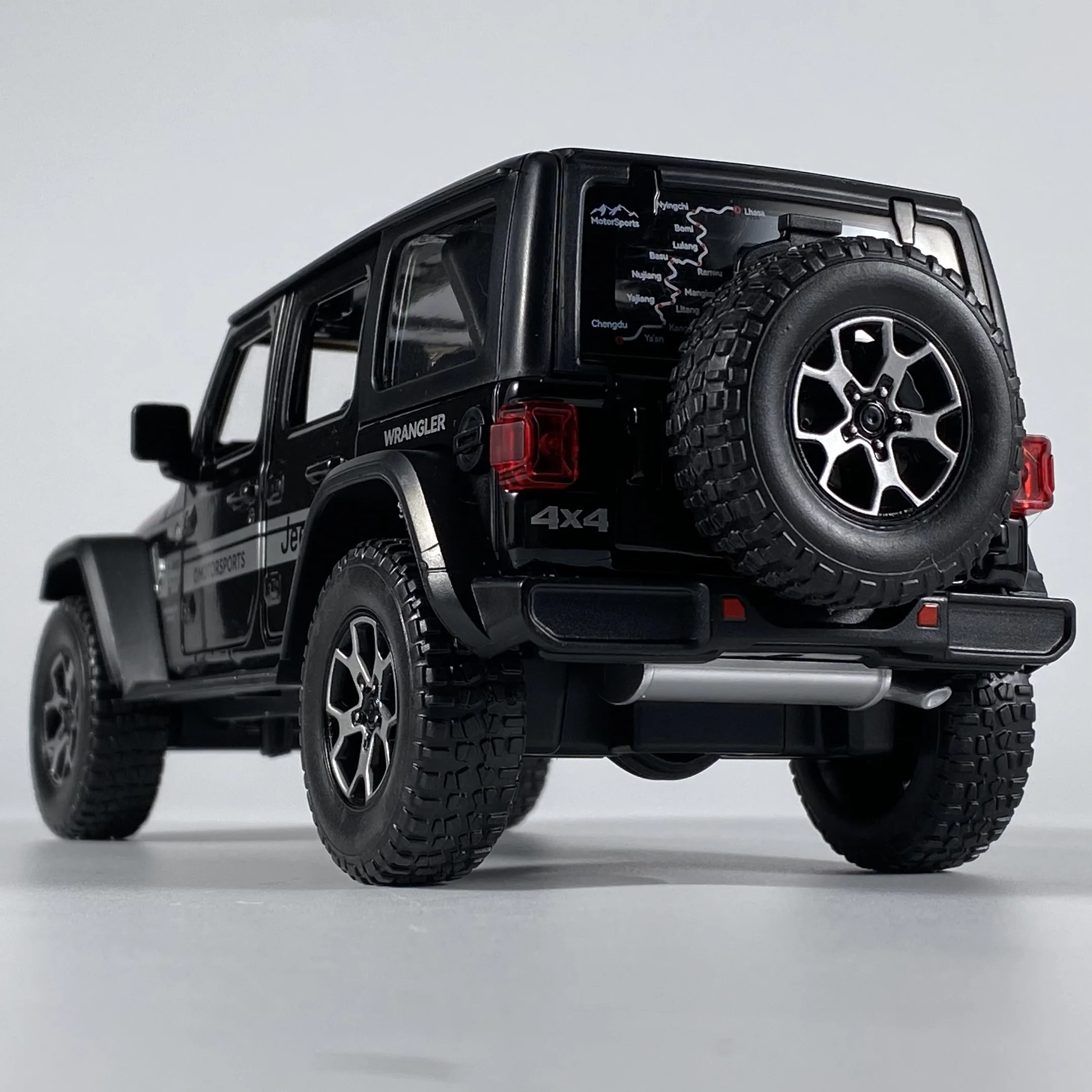 - Scaled at 1:22, this model boasts precise, detailed craftsmanship that mimics the rugged design of the real Jeep Wrangler Off Road SUV, perfect for display and collection purposes.