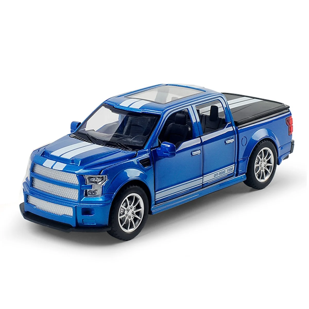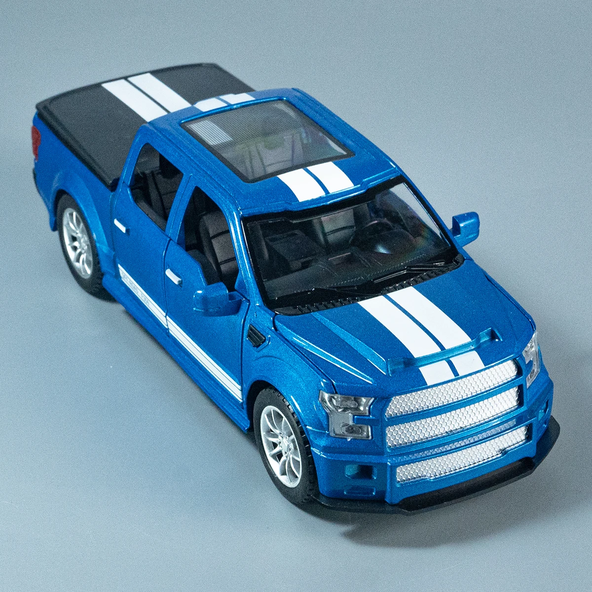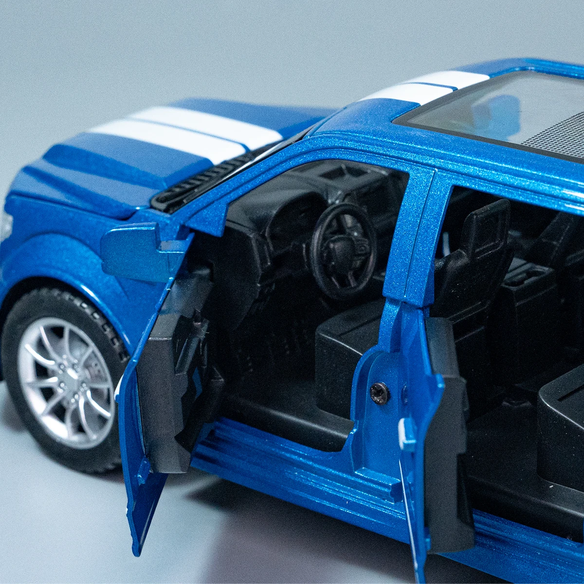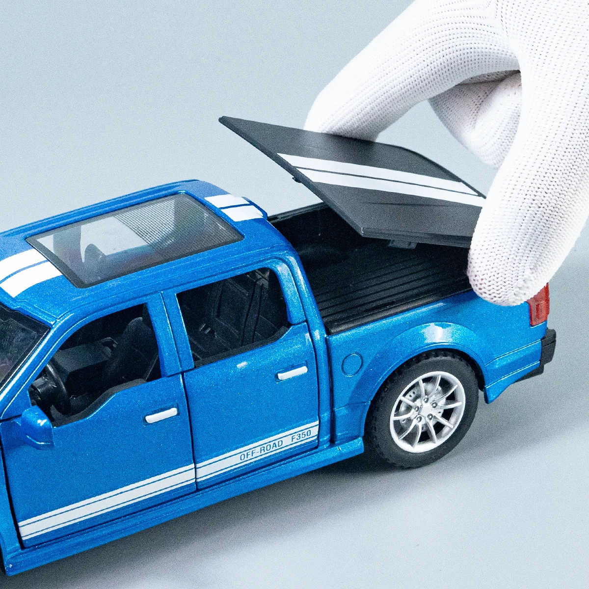 Experience the realism of this 1:22 scale diecast model pickup truck, crafted from high-quality alloy with a glossy finish available in black, blue, and red. This detailed collectible features textured grille patterns, illuminated headlights, alloy-style rims with intricate rims and low-profile tires, and functional opening doors and tailgate revealing a lifelike interior. No batteries are needed, making it durable for display or collection. Perfect for collectors, hobbyists, or enthusiasts seeking a sophisticated miniature vehicle, this non-electric model combines craftsmanship and realism in a compact size, measuring approximately 1-3 cm with slight manual measurement variance.