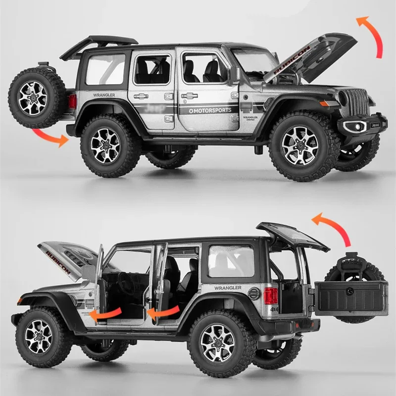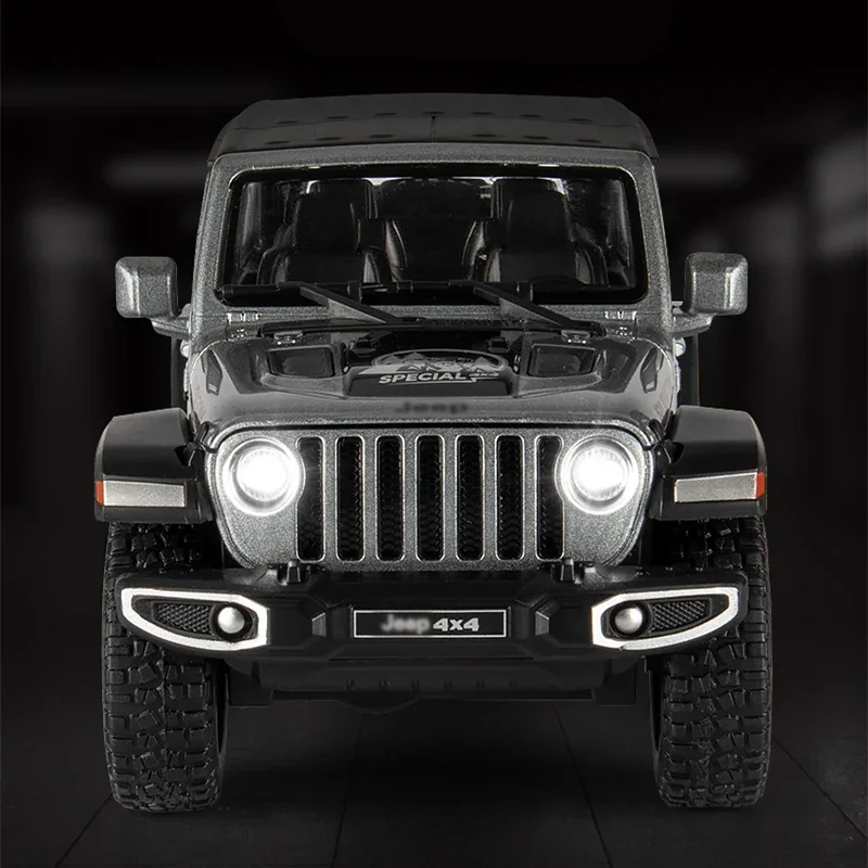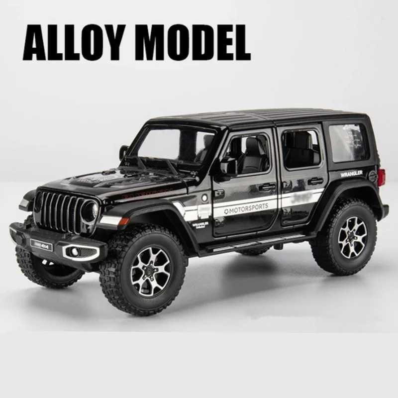 Indulge in the artistry of the 1:22 scale diecast model of the Jeep Wrangler Rubicon. This stunning piece boasts a sleek black glossy finish, showcasing the renowned rugged design that Jееp models are celebrated for. Crafted from high-quality alloy metal with plastic components, it features a prominent front grille adorned with halogen-style headlights. The detailed off-road tires with deep treads reflect its adventurous spirit. Complete with clear plastic windows for interior visibility and authentic branding decals, this model captures the essence of the real vehicle. Perfect for collectors and enthusiasts alike, it’s an embodiment of automotive passion and craftsmanship, making it an ideal gift for those who appreciate fine-scale models.