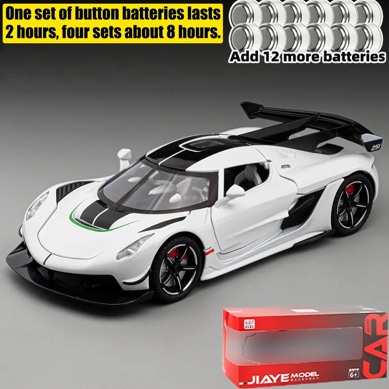 Imagine showcasing this exquisite 1:22 Jesko Supercar Diecast Model Car in your collection. With its high simulation design, this alloy model not only captivates the eye but also ignites your passion for automotive excellence. Perfect for display in any setting, this meticulously crafted piece signifies more than just a model; it's a celebration of engineering artistry. Whether you're an avid collector or searching for a perfect gift for a car enthusiast, this piece commands attention and admiration. Elevate your space with this iconic supercar that combines style, luxury, and an authentic feel.