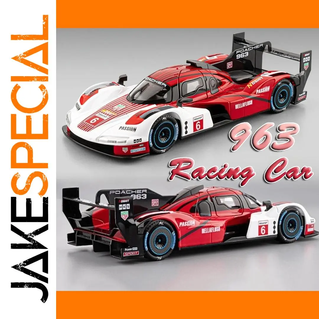 Step into the world of high-performance racing with this meticulously crafted 1:22 scale diecast model of the Porsche 963 P1 GTR. Designed for collectors and enthusiasts, this model captures the sleek, aerodynamic silhouette with precise detailing, including iconic sponsorship decals, bold racing numbers, and intricate surface textures. The glossy finish enhances its premium look, while the aerodynamic elements such as the rear wing, side skirts, and vents emphasize its racing prowess. The model features functional opening doors, a pull-back mechanism for smooth forward motion, and shock-absorbing rubber tires, making it durable and realistic. Its compact size makes it an ideal display piece, evoking the thrill of high-speed racing.