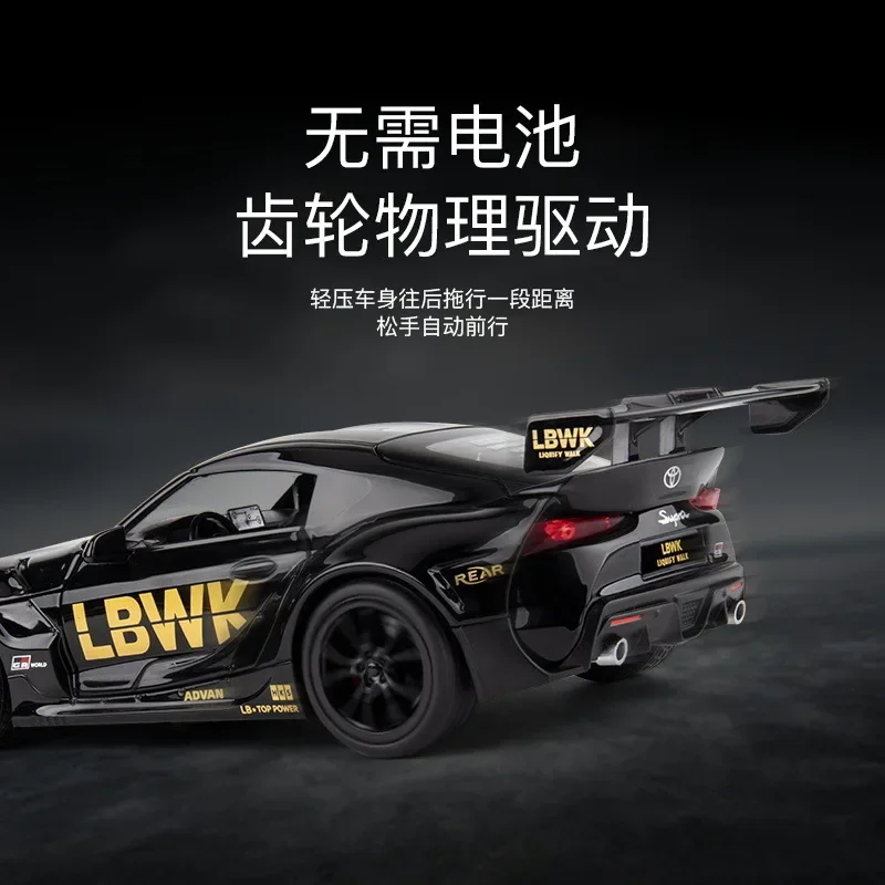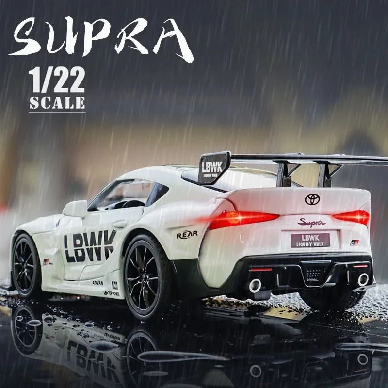 Experience the thrill of high-performance racing with this highly detailed 1:22 scale Toyota Supra diecast model, crafted from alloy metal with a sleek metallic finish. Featuring functional doors that open, illuminating lights, pull-back motion, and realistic sound effects, this model captures every aerodynamic curve and sharp detail of the real car. Available in multiple colors—white, black, and red—with options for boxed or unboxed versions, it’s perfect for collectors, craft exhibits, or as a sophisticated gift. Designed for enthusiasts aged 14 and above, this model offers a premium, immersive experience that brings the excitement of professional motorsport into your collection or display.