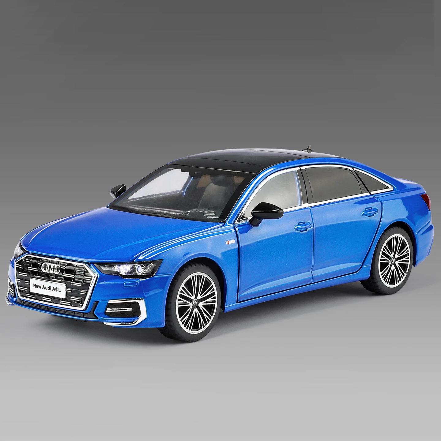 Experience the elegance and sophistication of the detailed 1:24 scale alloy metal diecast model of a luxury A6 or A6L vehicle. Crafted from durable alloy metal, this model showcases a sleek, glossy black finish that emphasizes its modern, high-end aesthetic. The intricately designed front grille features layered, horizontal slats with a shiny chrome hexagonal frame, while the sharp LED-style headlights add a touch of realism. Subtly embossed hood lines lead to a seamlessly detailed exterior, complete with chrome accents around windows and air intakes. The alloy wheels sport intricate spoke patterns, matching the real vehicle's premium appeal. Suitable as a collector’s item or birthday gift, it’s a perfect display piece for adult enthusiasts who appreciate performance-inspired design.