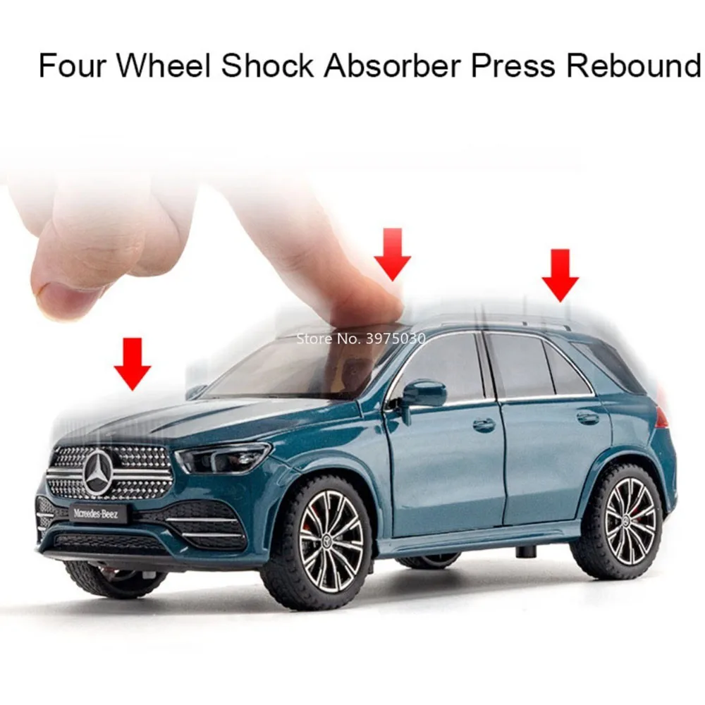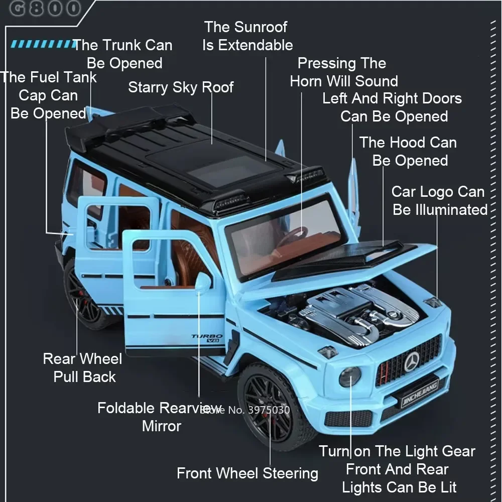Experience the thrill of owning a realistic and impeccably crafted 1:24 scale alloy diecasting toy car. Designed with meticulous attention to detail, these models replicate the sleek, modern appearance of luxury SUVs with glossy metallic finishes in bold colors such as blue, white, black, and pink. The models feature authentic grille designs, realistic headlights with clear lenses, lifelike door panel contours, and rolling textured rubber tires mounted on alloy-style rims. Each model is equipped with functional doors that open smoothly, realistic sound and light effects that enhance play, and a pull-back mechanism for effortless movement. Built for durability and style, these models bring a premium touch to any collection or display. Batteries are included for immediate use, making it perfect for passionate collectors or imaginative play.
