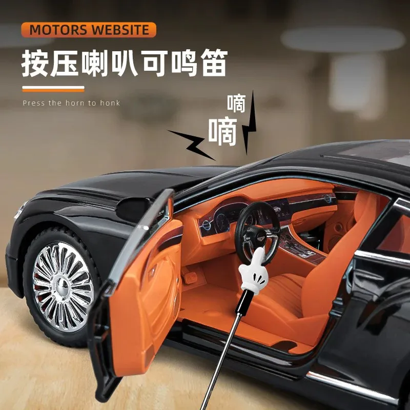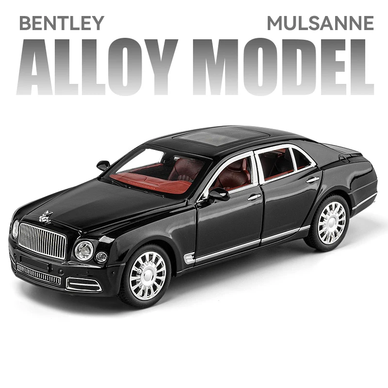 This 1:24 scale diecast model car features alloy metal construction and is available in elegant colors including white, black, gold, and green. Crafted with meticulous attention to detail, it showcases a sleek, aerodynamic design characteristic of luxury sports vehicles, with realistic features such as a detailed front grille, round headlights, chrome accents, multi-spoke alloy rims, and transparent windows revealing a vibrant interior. Suitable for collectors and enthusiasts aged 14 and above, this model captures the essence of the Bentley Continental GT Mulsanne GT, making it a perfect decorative piece or hobby display ornament that combines high-quality craftsmanship with striking visual appeal.
