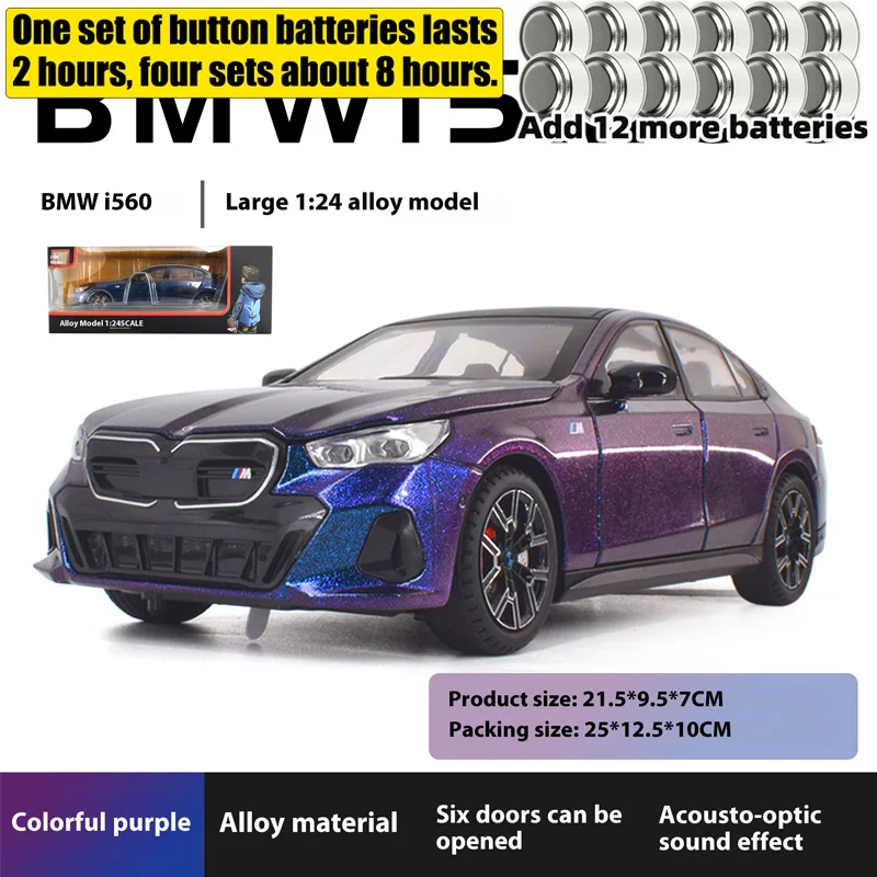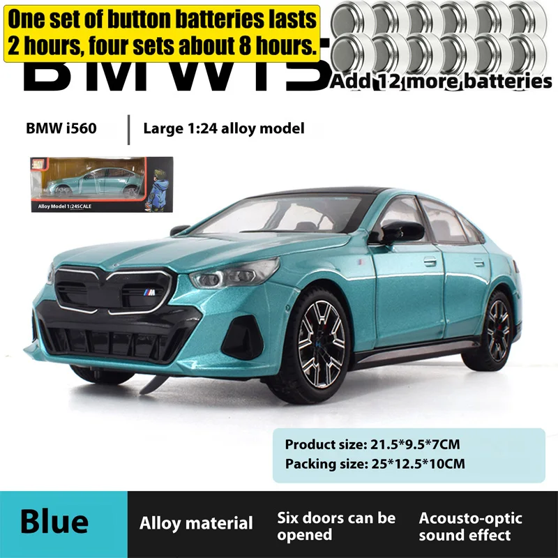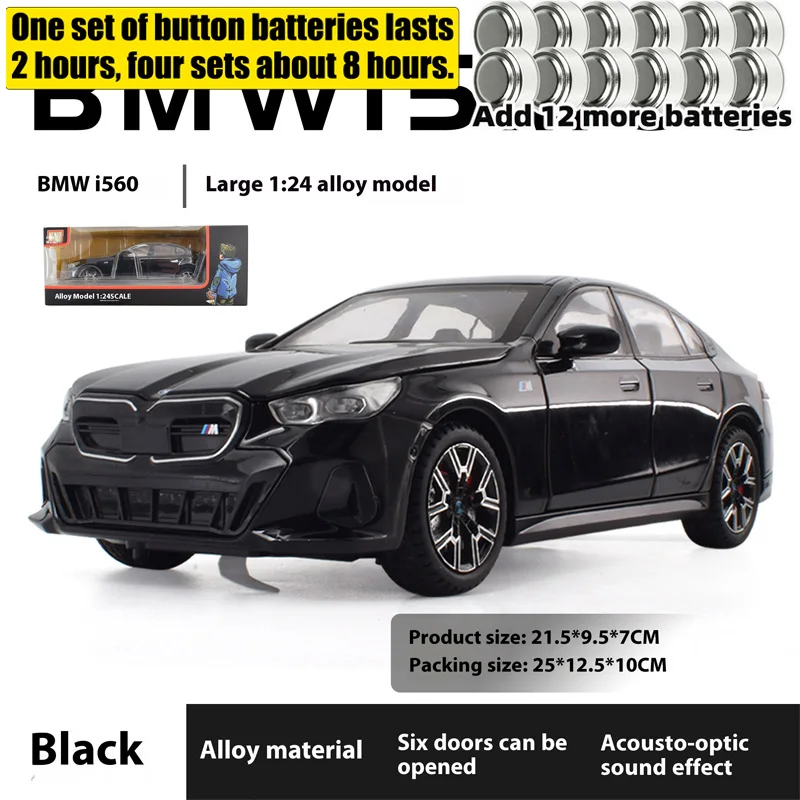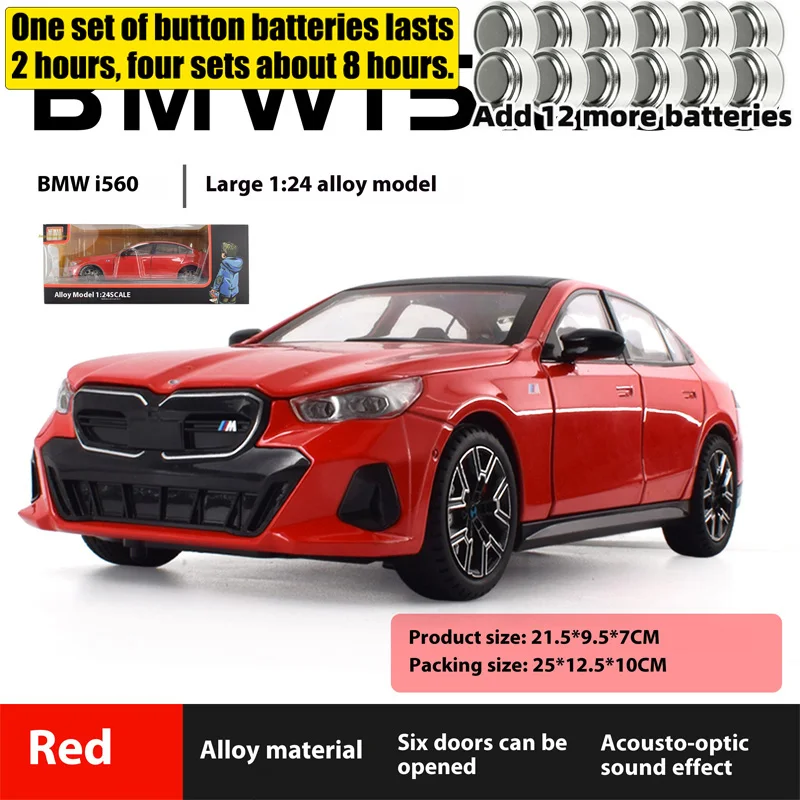 Experience the thrill of owning this detailed 1:24 scale BMW I5 M60 Xdrive diecast metal model, featuring realistic sound and light functions. Crafted with durable metal, this vibrant collectible captures the sleek design and performance of the original vehicle, making it perfect for display or added to your collection. The pull-back mechanism allows for smooth, dynamic movement, giving you a sense of realism and excitement. Whether a passionate collector or an enthusiast looking to enhance your space, this model combines quality craftsmanship with eye-catching features, bringing a touch of automotive excellence into your personal collection.