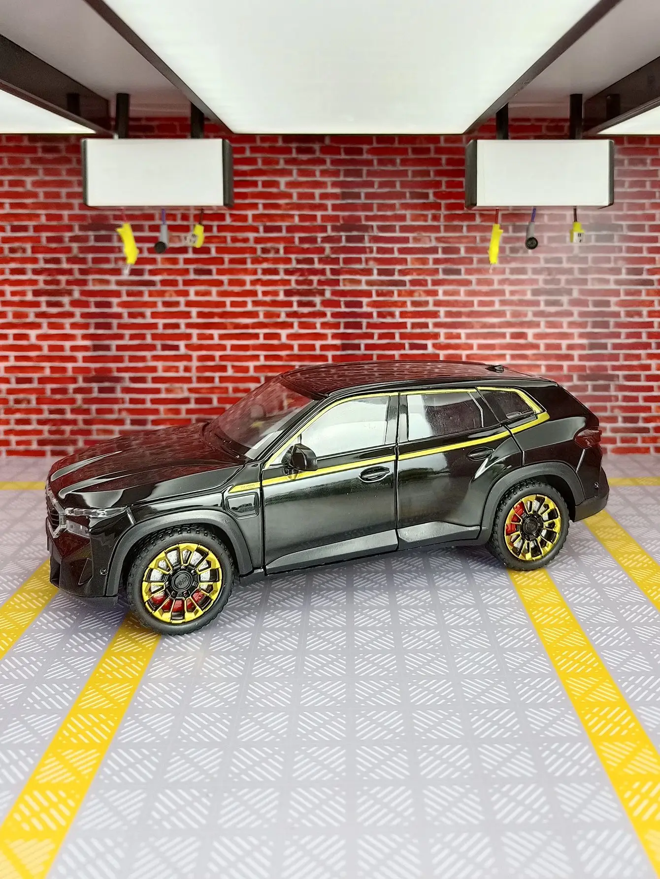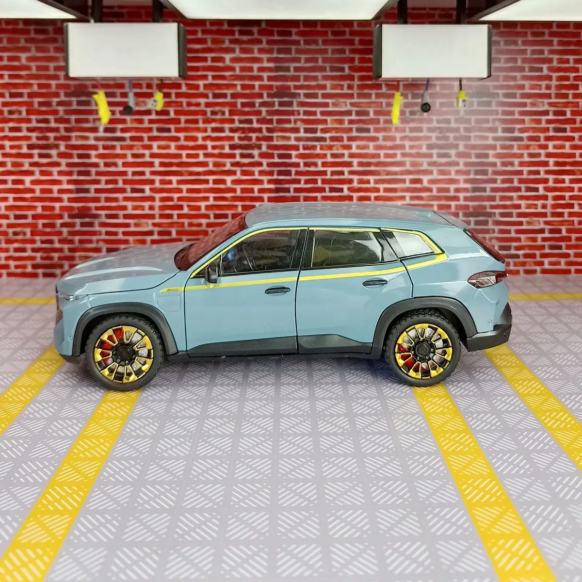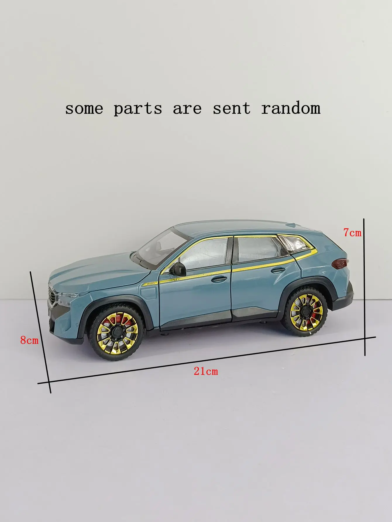 Experience the thrill of owning this expertly crafted 1:24 scale BMW XM SUV diecast model, featuring a sleek metallic blue finish, detailed alloy construction, and striking sporty accents. Equipped with functional sound and light features powered by a button battery system, this high-simulation model captures every detail—from the prominent front grille and sculpted body lines to the large multi-spoke rims with black and yellow accents. Its durable metal build and realistic textured tires make it a perfect collectible or gift for enthusiasts aged 6 to 18+. Whether displayed or played with, this stylish model offers an impressive, high-end aesthetic designed to captivate.