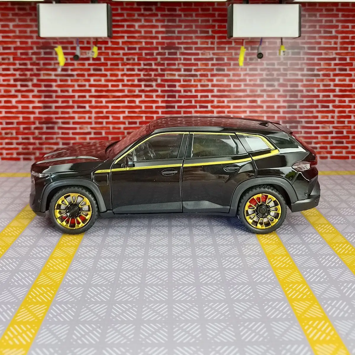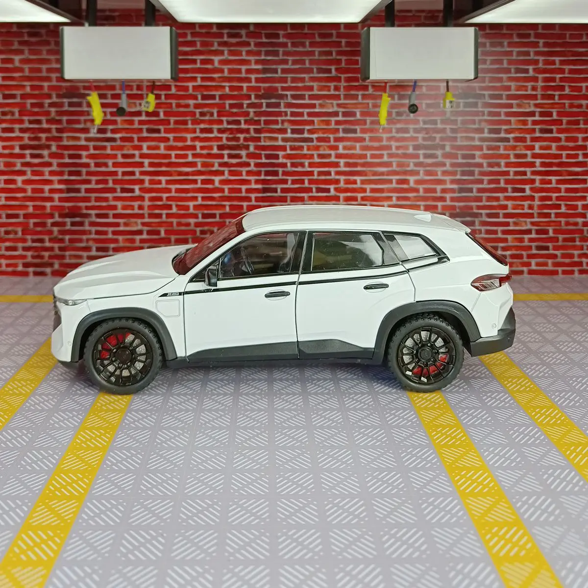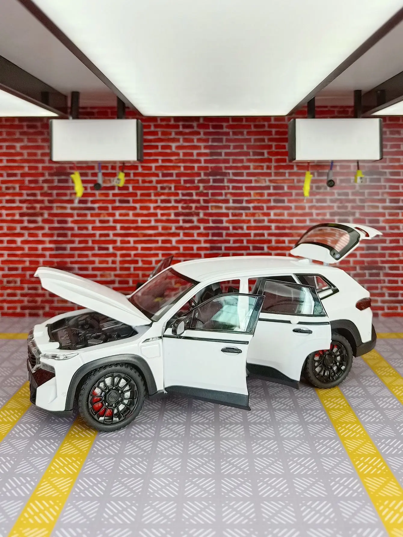 Experience the thrill of owning this expertly crafted 1:24 scale BMW XM SUV diecast model, featuring a sleek metallic blue finish, detailed alloy construction, and striking sporty accents. Equipped with functional sound and light features powered by a button battery system, this high-simulation model captures every detail—from the prominent front grille and sculpted body lines to the large multi-spoke rims with black and yellow accents. Its durable metal build and realistic textured tires make it a perfect collectible or gift for enthusiasts aged 6 to 18+. Whether displayed or played with, this stylish model offers an impressive, high-end aesthetic designed to captivate.