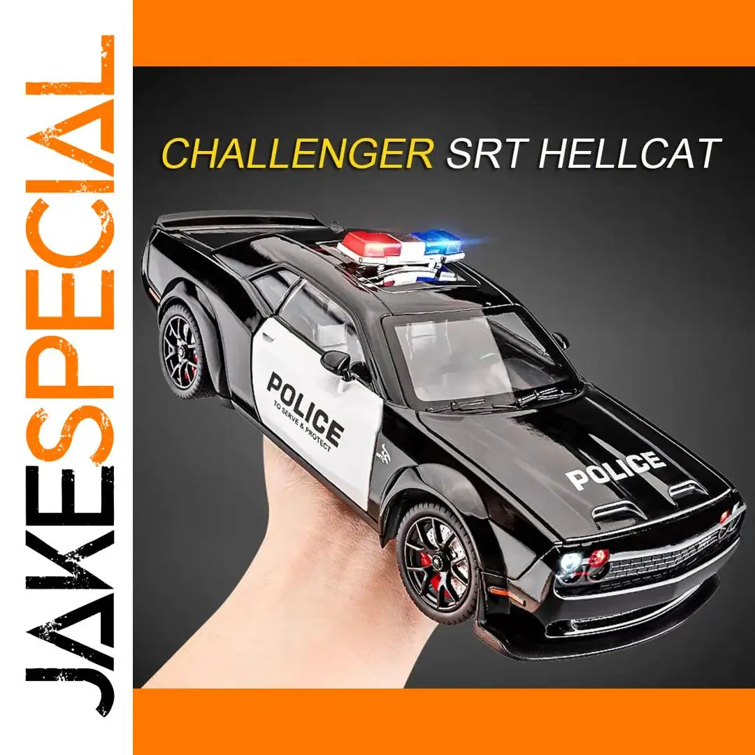 Enjoy owning this beautifully crafted police car model that combines realistic design, functional features, and durable materials. Whether as a gift or a display piece, this model promises to impress with its detailed details and engaging features. Transform your space with a vivid, collectible A-grade model that looks and feels just like the real police vehicle. Add this stunning model to your collection now and experience the thrill of owning a highly detailed replica of the Dodge Challenger SRT Hellcat police car!