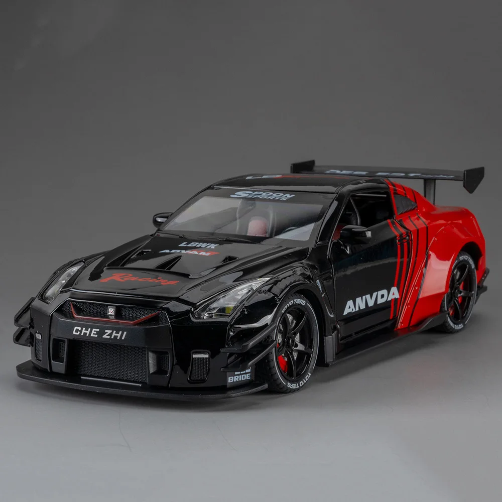 Experience the thrill of high-performance racing with this 1:24 scale alloy diecast car model, featuring a durable metal body, plastic chassis, and rubber tires. The sleek design showcases vibrant colors including blue-yellow, red-black, and white, with detailed decals and aerodynamic elements that evoke real race cars. Functional features include front wheel steering, operable doors, pull-back movement, and built-in lights and sound for an immersive display. Measuring approximately 20.7 x 8.6 x 5.5 cm, this high-simulation model is perfect for collectors and racing enthusiasts aged 14 and up. Batteries are not included, ensuring a personalized experience.