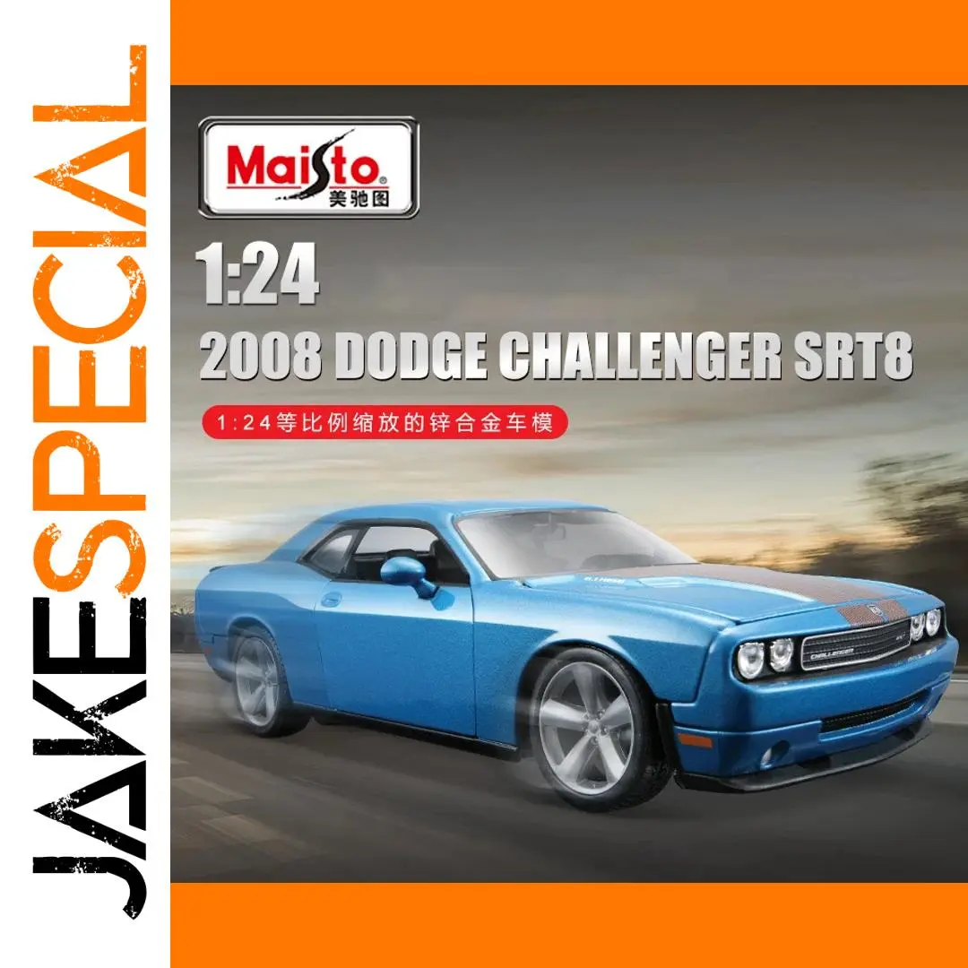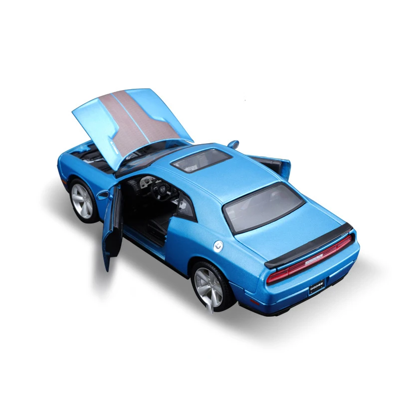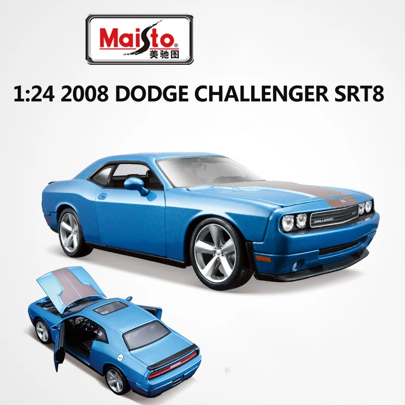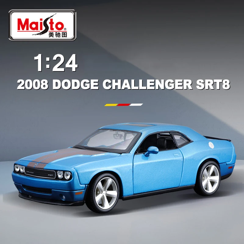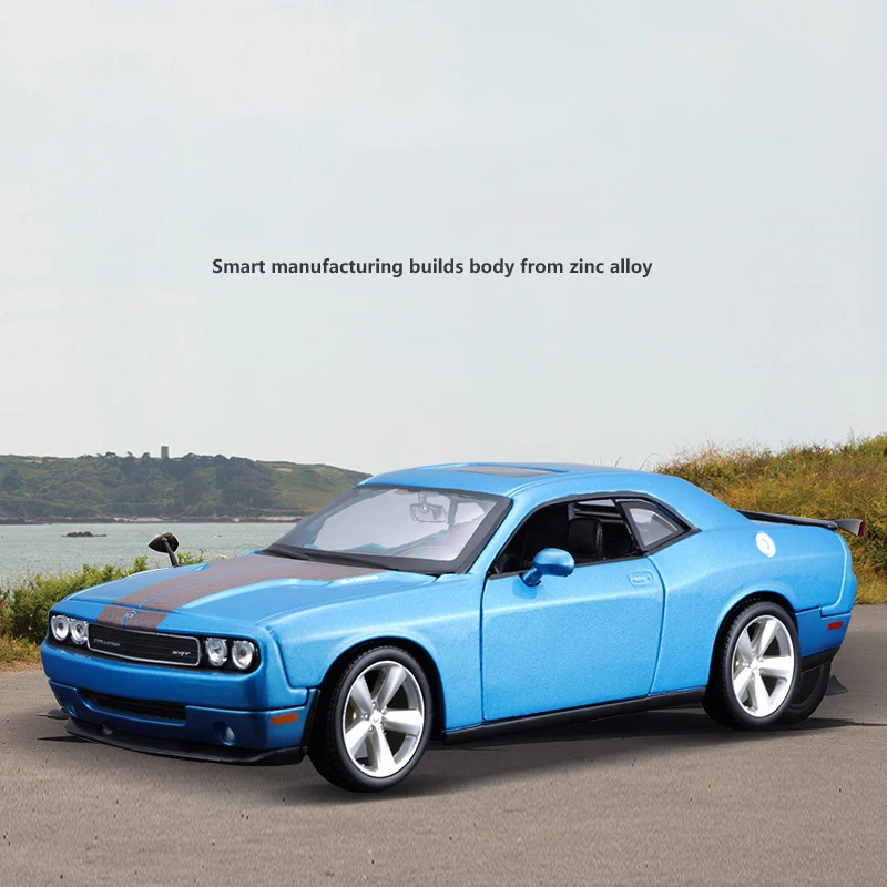 Experience the excitement of the 2008 Dodge Challenger SRT8 with this highly detailed 1:24 scale diecast metal miniature model in vibrant blue. Crafted from alloy and plastic, it features a glossy metallic finish, a contrasting dark racing stripe along the hood, and authentic design details including a prominent grille, four round headlights, multi-spoke alloy wheels, and realistic side mirrors. Perfect for collectors and enthusiasts, this high-quality model captures the muscular, sporty silhouette and sleek lines of the original vehicle, making it an eye-catching addition to any display. Suitable for ages 4 and up, it offers durability and premium craftsmanship without electronic components or chemical concerns.