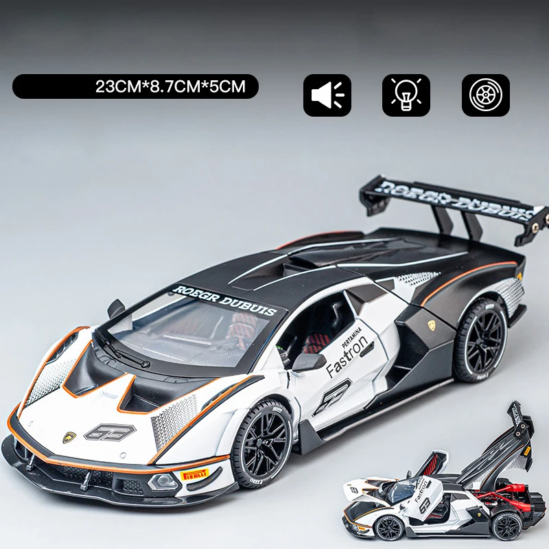 Experience the thrill of owning a highly detailed 1:24 scale diecast model of the Lamborghini Huracan Sterrato Essenza SCV12 all-terrain supercar. Crafted from durable metal, this model captures the sleek, aggressive lines characteristic of Lamborghini’s iconic styling. Its primary color is white, accented with a bold black stripe running from the front to the rear, complemented by thin yellow pinstripes that add a sporty touch. The intricate front design features angular, narrow LED headlights, large air intakes, and a pronounced bumper emphasizing its rugged performance. The wheels boast multi-spoke black rims with realistic tire tread, while the rear includes a subtle spoiler and detailed taillights, creating a truly immersive collector’s piece. Ideal for enthusiasts, it showcases speed, agility, and durability.