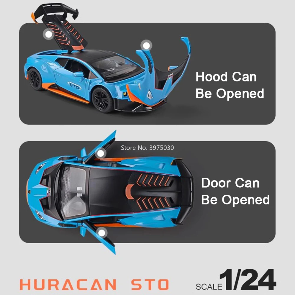 - Realistic 1:24 scale model with a zinc metal body and durable plastic chassis, capturing every detail of the Lamborghini Huracan STO for authenticity and strength.