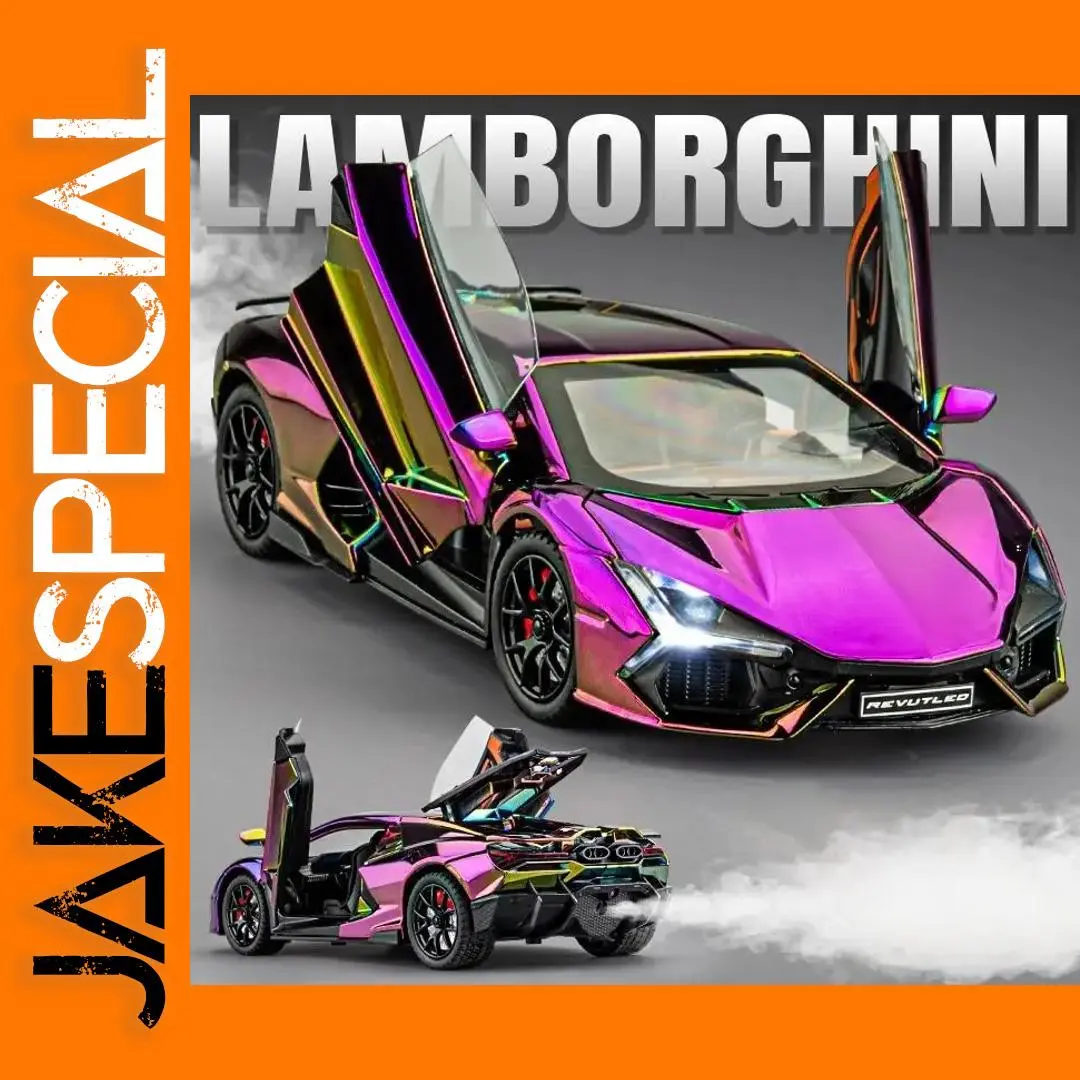 Experience the thrill of the Lamborghini Revuelto with this detailed 1:24 scale diecast model car, perfect for adult collectors. Crafted with precision from durable metal, this miniaturized supercar captures every sleek curve and dynamic detail of the real vehicle, making it an impressive addition to any collection. Whether displayed alone or alongside other collectibles, this model brings automotive excellence to your space. Its realistic design offers a tactile experience and a striking visual presence. An ideal piece for enthusiasts seeking a high-quality, collectible miniature, this Lamborghini Revuelto model is sure to ignite your passion for luxury sports cars and serve as a conversation starter in any collection.