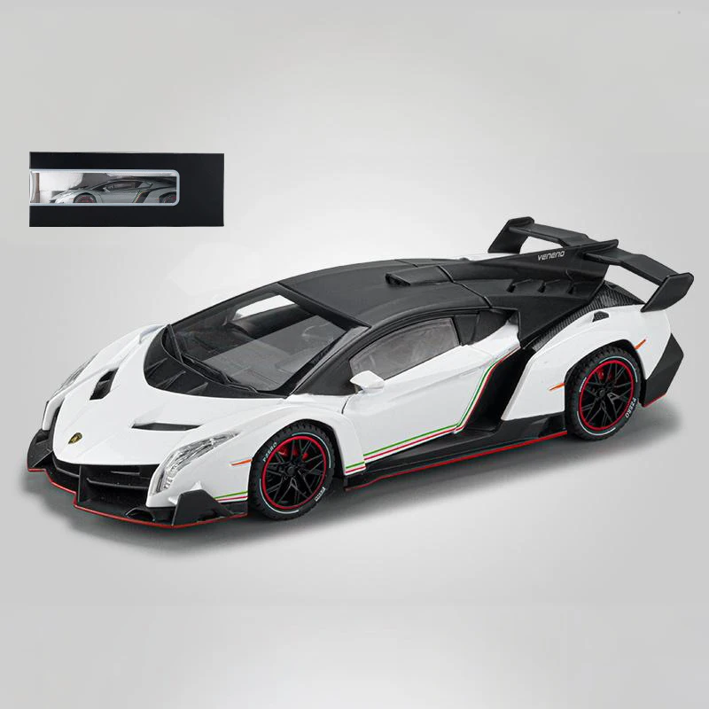 Imagine adding this stunning 1:24 scale Veneno model to your collection today. Its intricate design and bold aesthetic are perfect for display or gifting to fellow enthusiasts. Don't miss your chance to own this limited edition supercar replica that combines realism with artistic craftsmanship. Elevate your space with a piece that speaks to your passion for high-performance vehicles. Order now to enjoy a realistic and detailed model that captures the thrill and sophistication of this iconic supercar, making it an invaluable addition to your collection or a memorable gift for a car lover.
