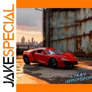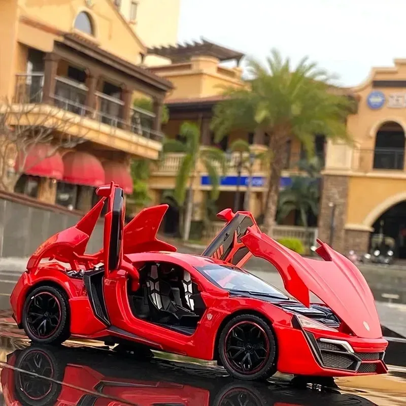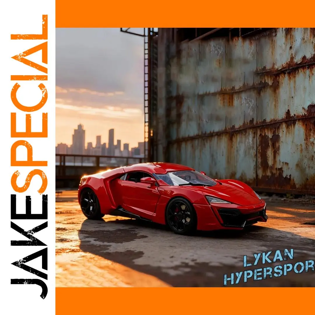 Bring the thrill of high-performance automotive design to your collection with this detailed 1:24 scale Lykan Hypersport alloy diecast model. Crafted from durable alloy and plastic, this sleek miniature features a vibrant red, black, or white finish with glossy surfaces that highlight its aerodynamic curves, sharp angular lines, and sporty profile. The model includes realistic details such as sculpted side panels with air intakes, narrow angular headlights, black multi-spoke rims, and seamlessly tinted windows. Perfect for display or play, it measures approximately 1/24 of the actual supercar, is non-electronic, battery-free, and suitable for ages 4 and up, making it a must-have for enthusiasts and collectors alike.